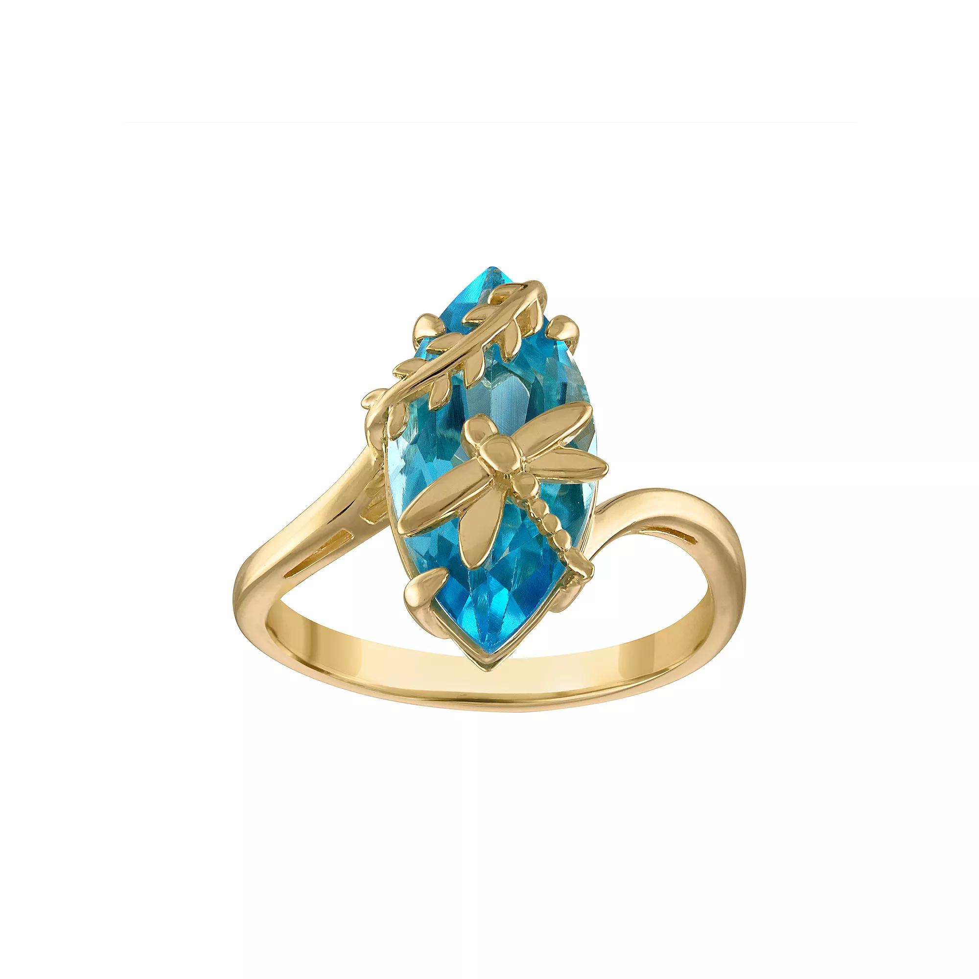 A shimmering, marquise-cut blue topaz center stone makes this Tiara dragonfly ring a delightful addition to your everyday wardrobe. A shimmering, marquise-cut blue topaz center stone makes this Tiara dragonfly ring a delightful addition to your everyday wardrobe. Nickel free Metal: sterling silver Packaging: boxed Plating: 14k gold Width: 10 mm Finish: polishedSTONE DETAILS Stone type: blue topaz Center stone weight: 5 1/2 ct. Center stone size: 16 mm x 8 mm Shape: marquise Setting: prong Gemstones may have been treated to enhance their appearance. Special care may be required. Please visit our Gemstone Treatment & Special Care Guide for more information. Size: 9. Color: Yellow. Gender: female. Age Group: adult. Material: Gold Over Sterling.