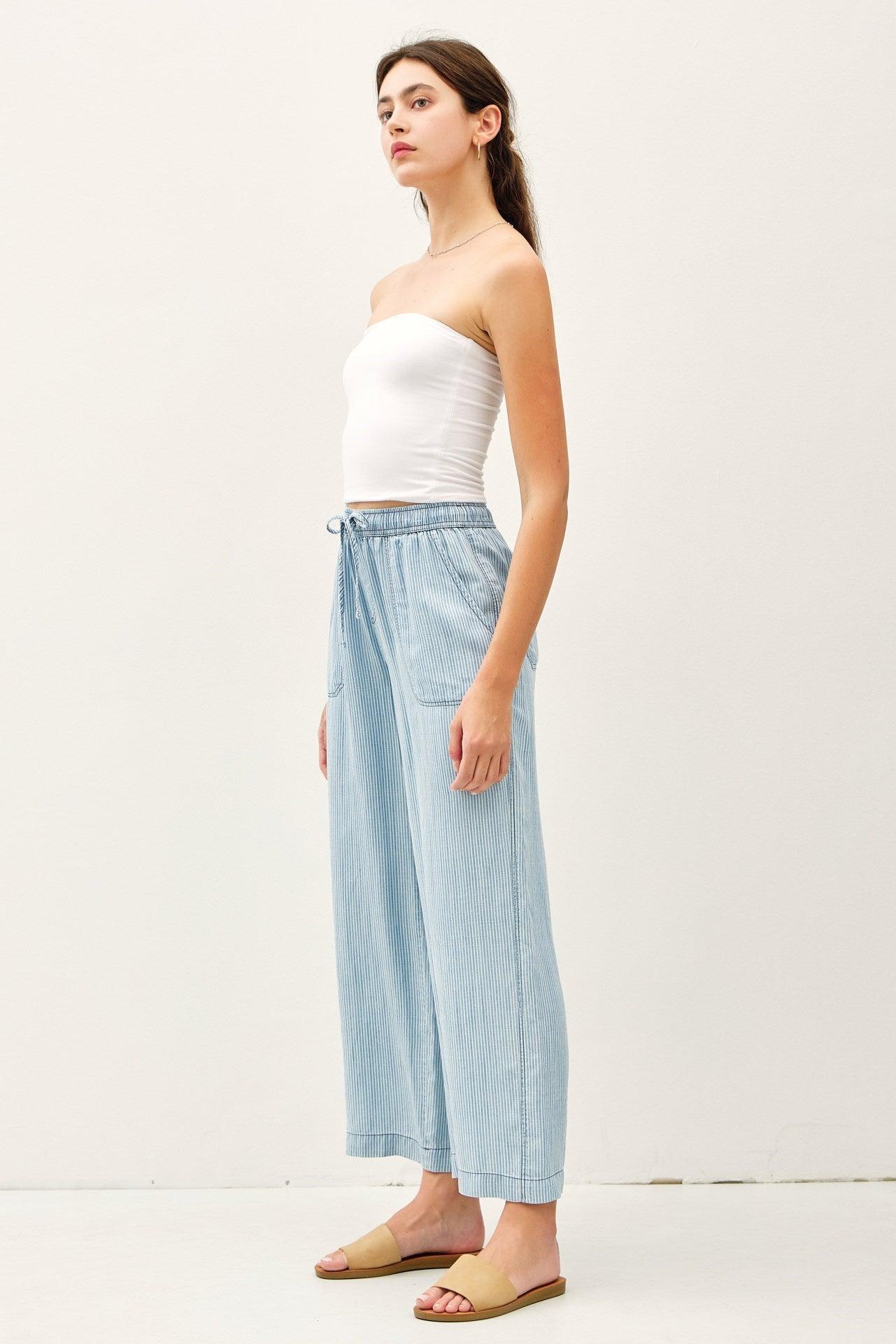 Stay stylish and comfortable all summer long in our Tidal Lines Striped Pants! Made with lightweight and airy tencel, these pull on pants feature a convenient elastic drawstring waistband and functional pockets. Perfect for vacations, these unlined pants are a must-have. 🌊🌴
