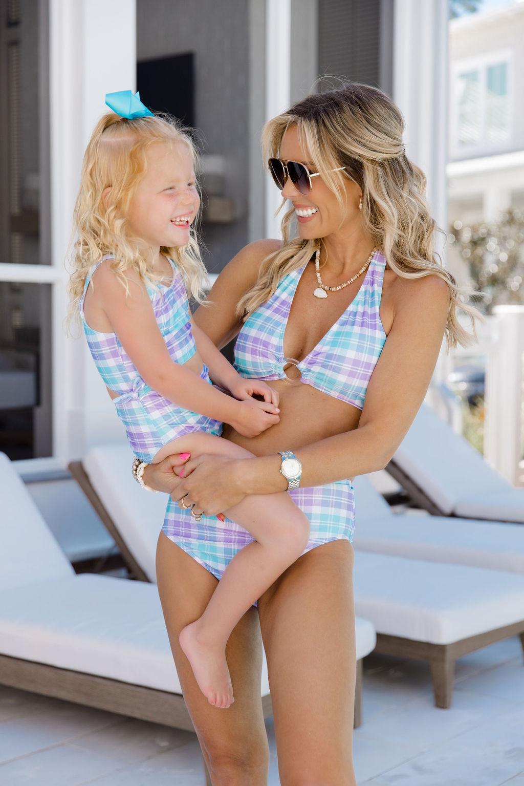 Details Bikini Top Fabric has stretch, fitted style Adjustable halter style, ring cut-out Pair this with the matching bottoms and sandals! Lined Size small from shoulder to hem: 12" Material and Care 84% polyester, 16% elastane Hand wash, dry flat Patterns may vary Materials may have natural variations Colors may vary from different viewing devices.