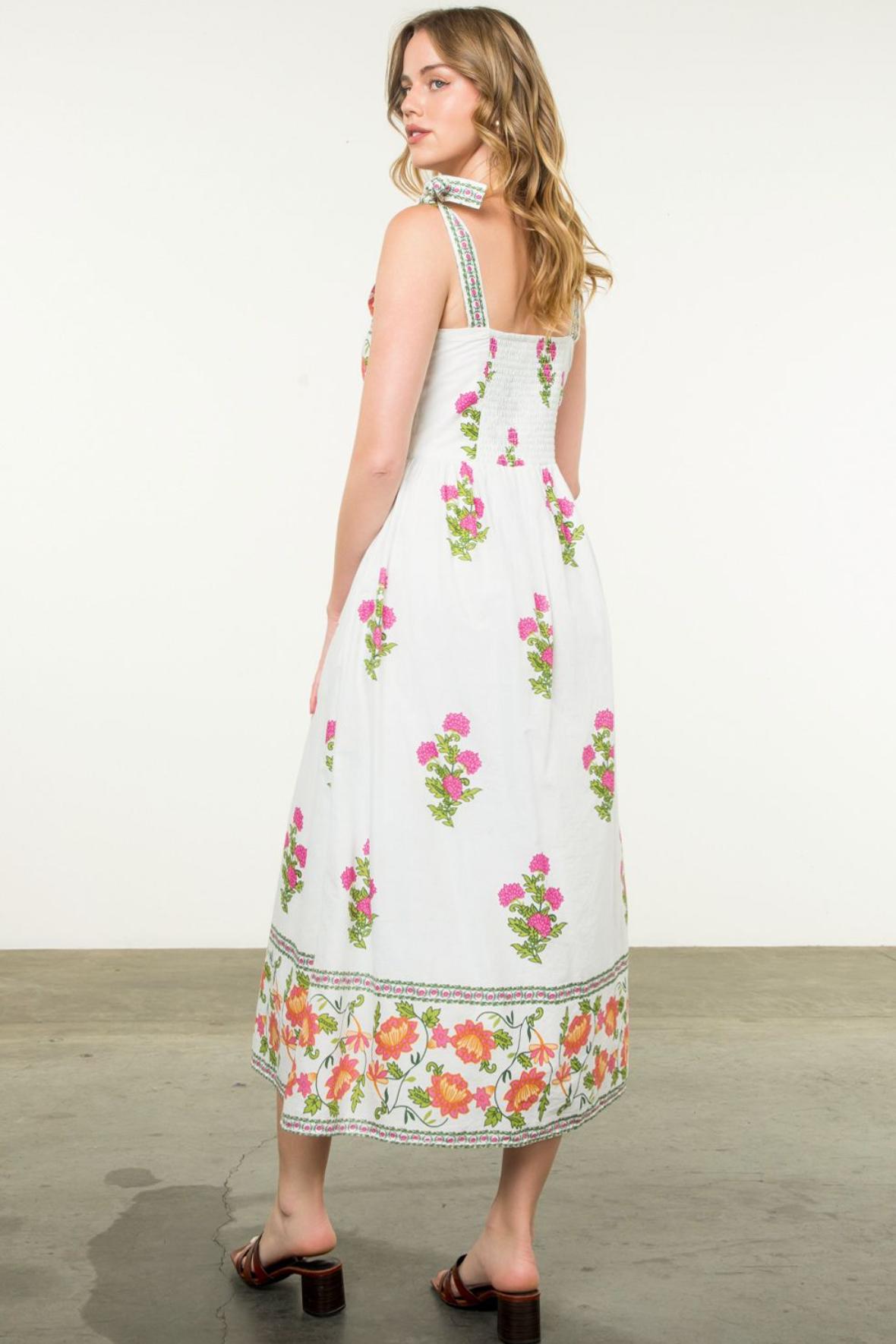 Tie Strap Floral Midi Dress