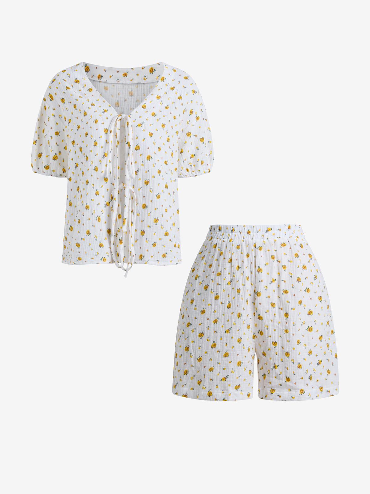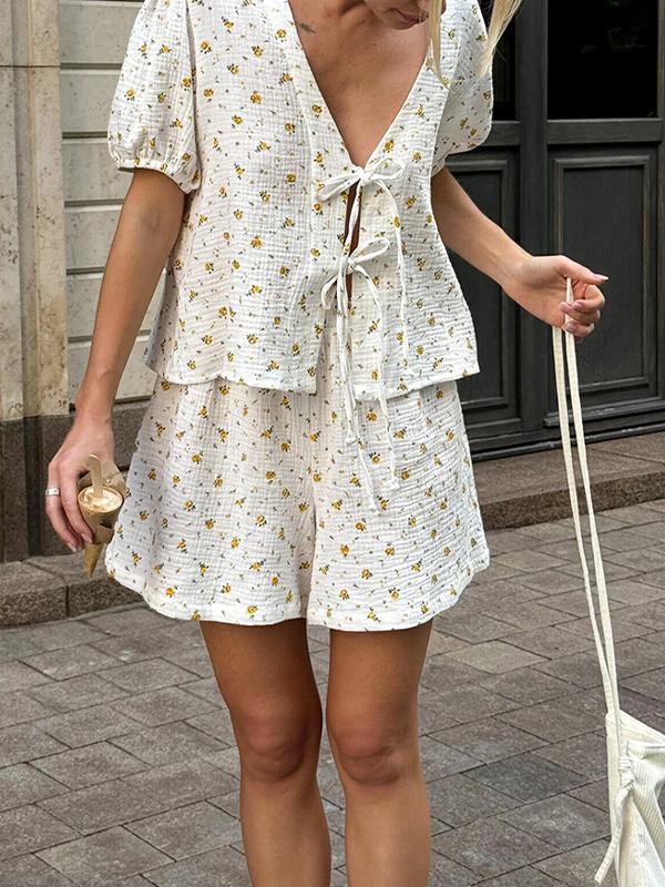 Tied Bubble Sleeves Two Piece