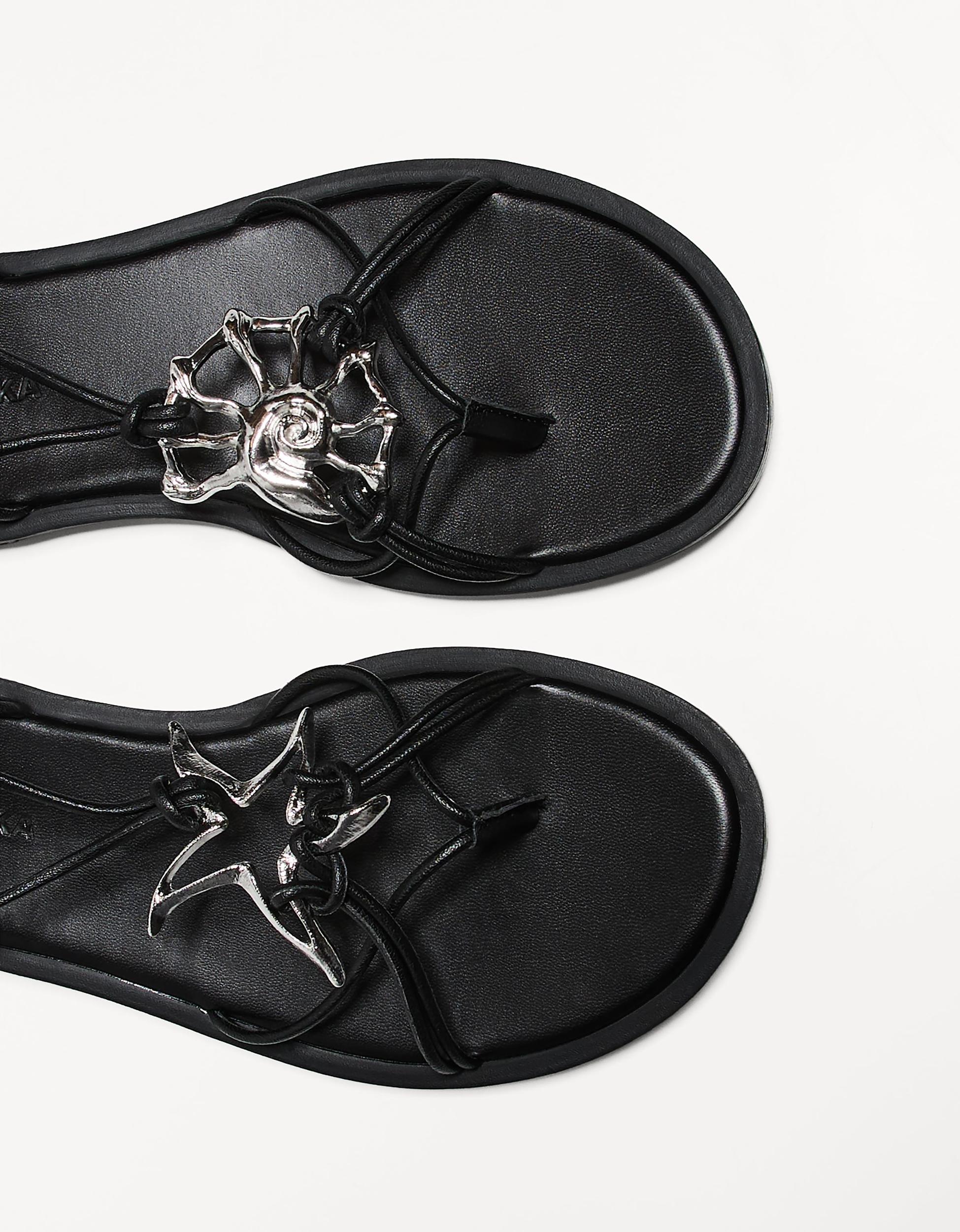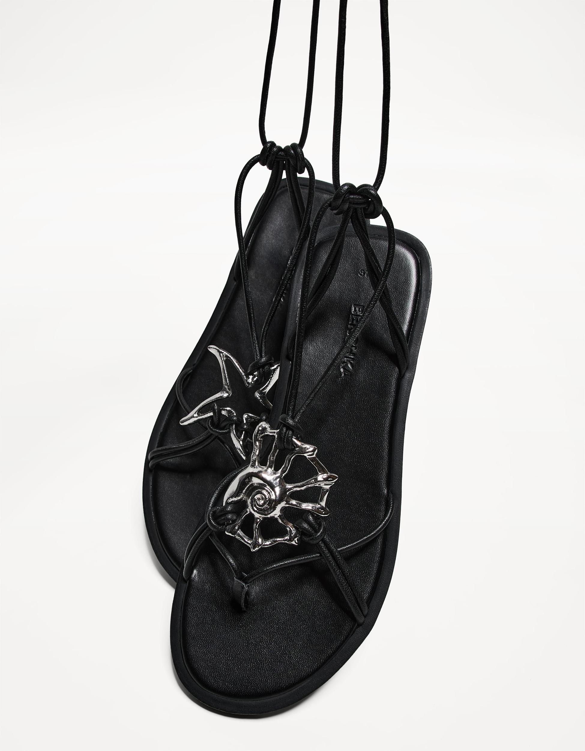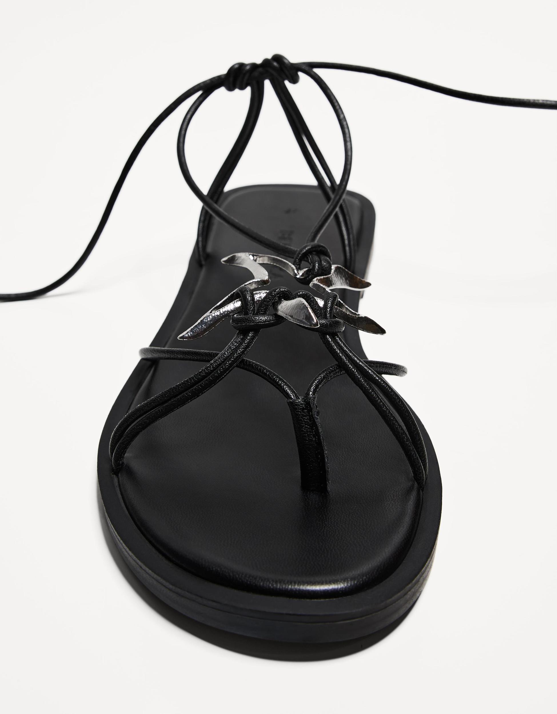 Tied flat sandals with metal detail