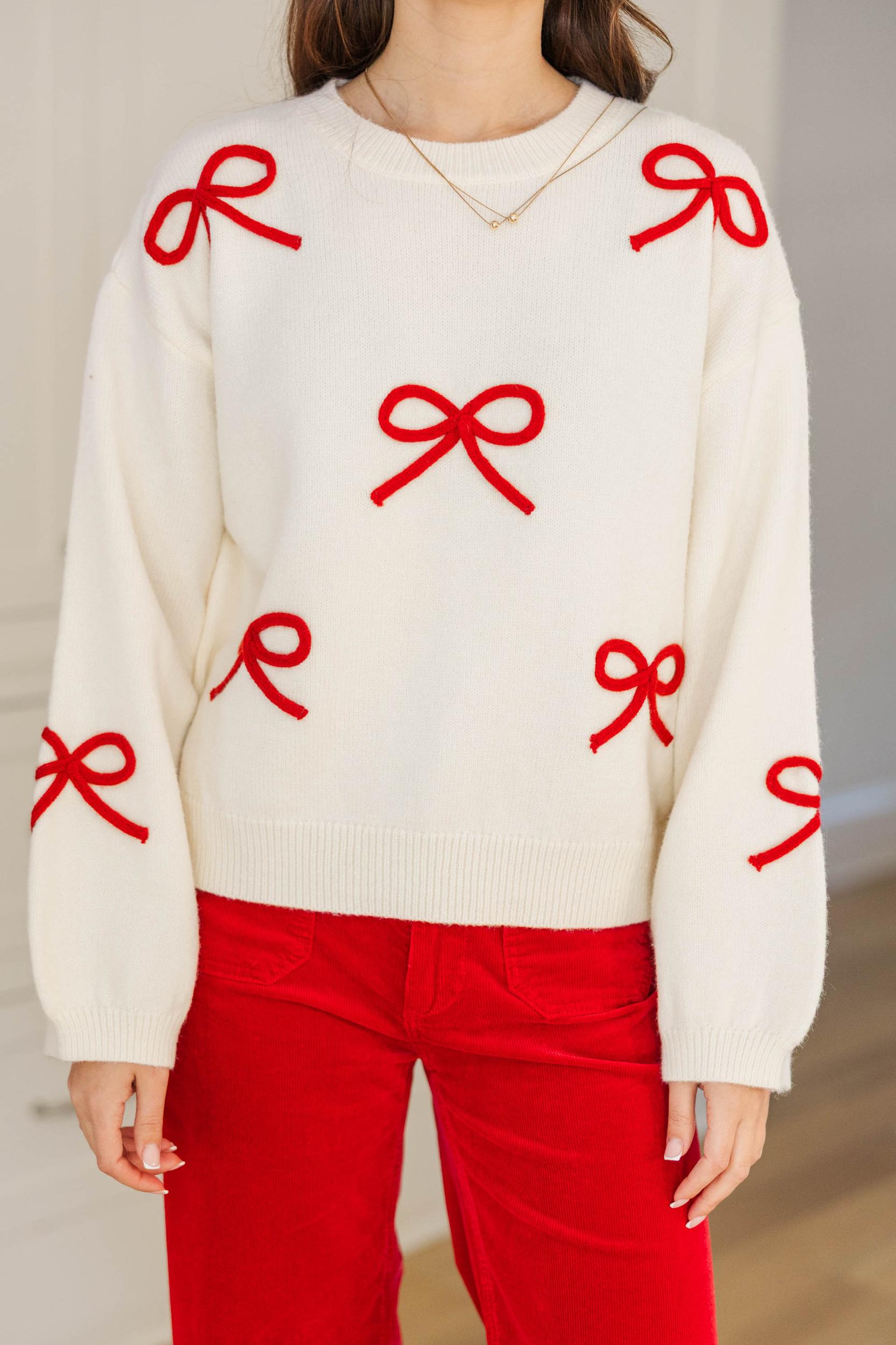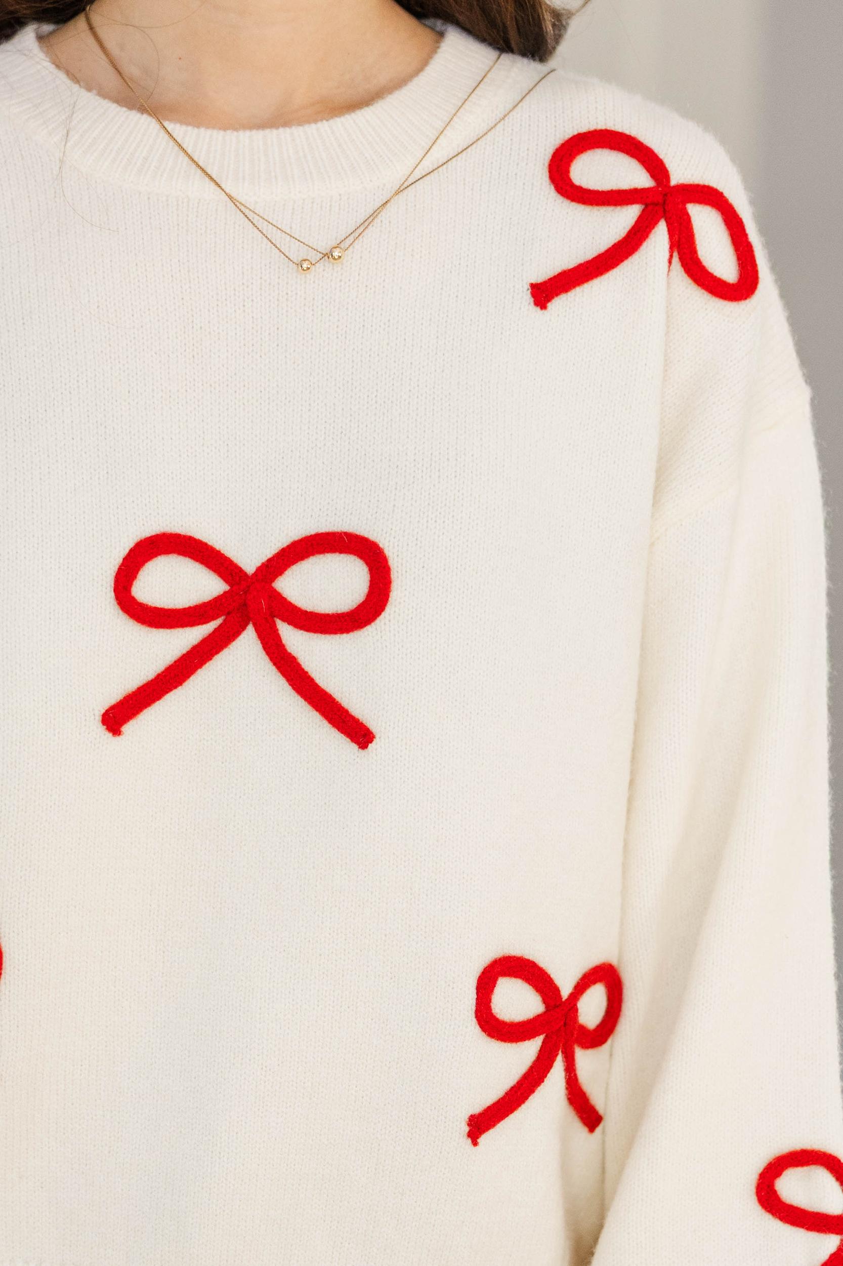 You are going to absolutely love this perfect sweater! Those bow embellishments are too cute! This sweater is perfect for the season and will look great with jeans and skorts! Round neckline Long sleeves Bow embellishments Generous stretch Baileigh is wearing the small.