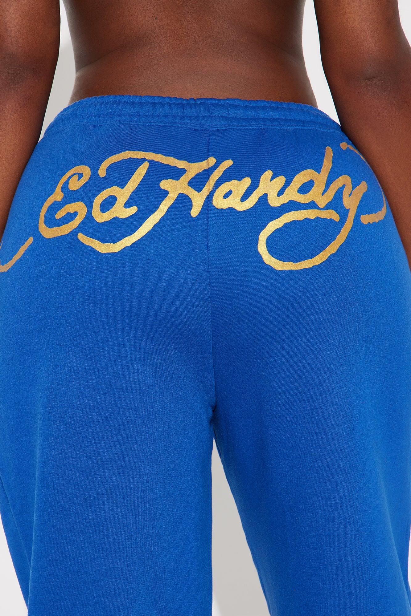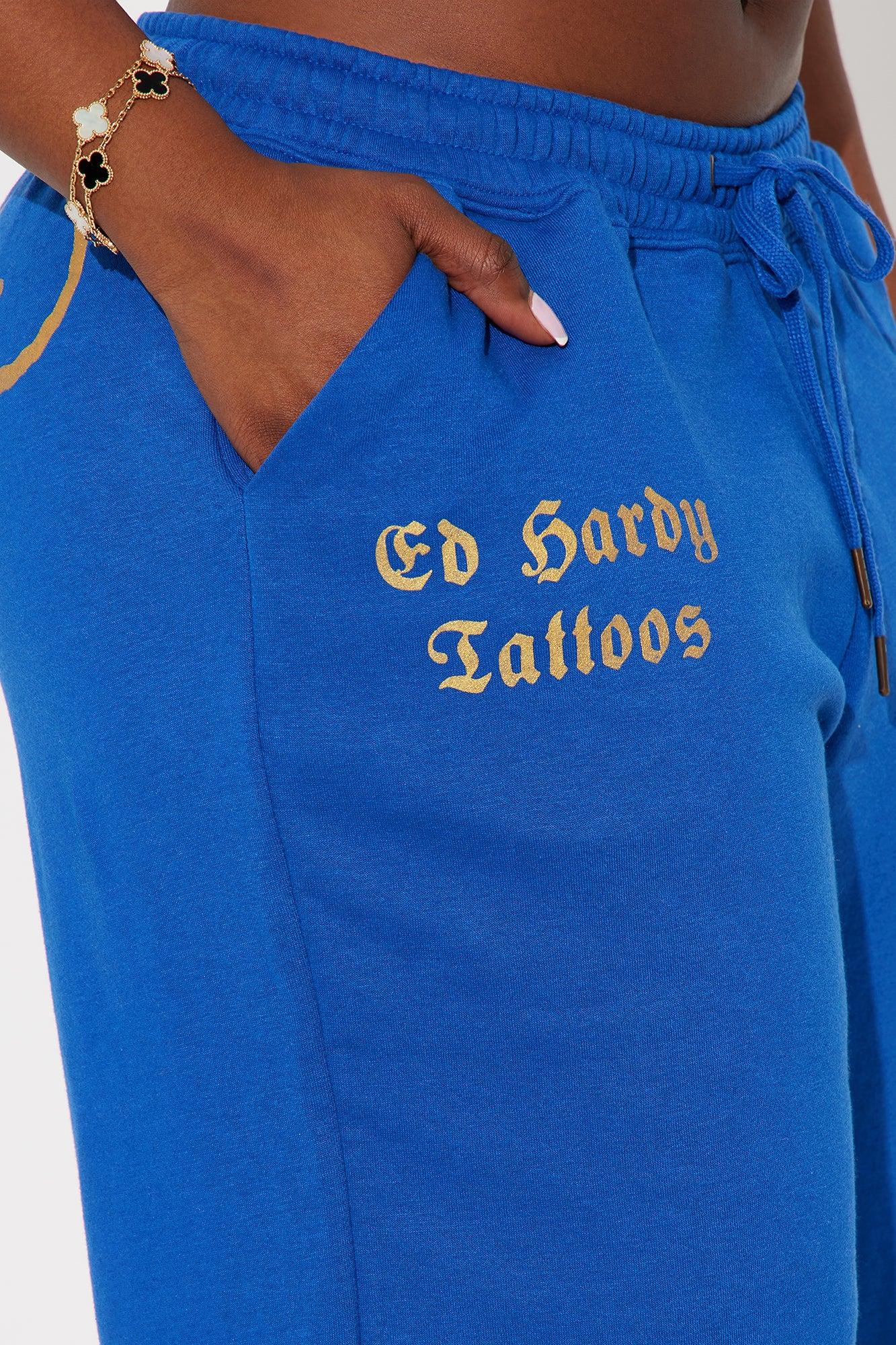 Available In CobaltBlue. Wide Leg Pant Drawstrings Pockets Ed Hardy Graphic Front And Back Screen Pair Back To "Tiger Lotus Ed Hardy Zip Front Hoodie" Disclaimer: Due To The Printing Process A Difference In Saturation May Occur. Each Garment Is Unique. 55% Cotton 45% Polyester Imported