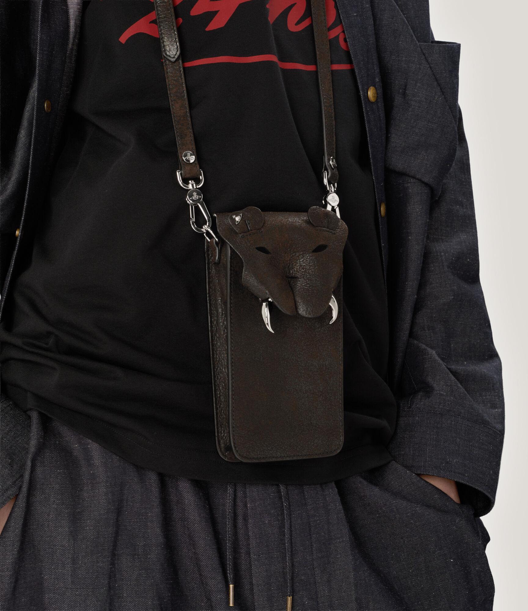 Our Tiger phone bag features a tiger motif at the front of the design, recalling the house's archival 'Tiger Head' bags, first introduced in the 2001 'Wild Beauty' collection, which explored the symbolism of animals. Crafted from distressed leather, the piece is complete with classic silver-tone hardware details and a miniature orb detail on the ear.