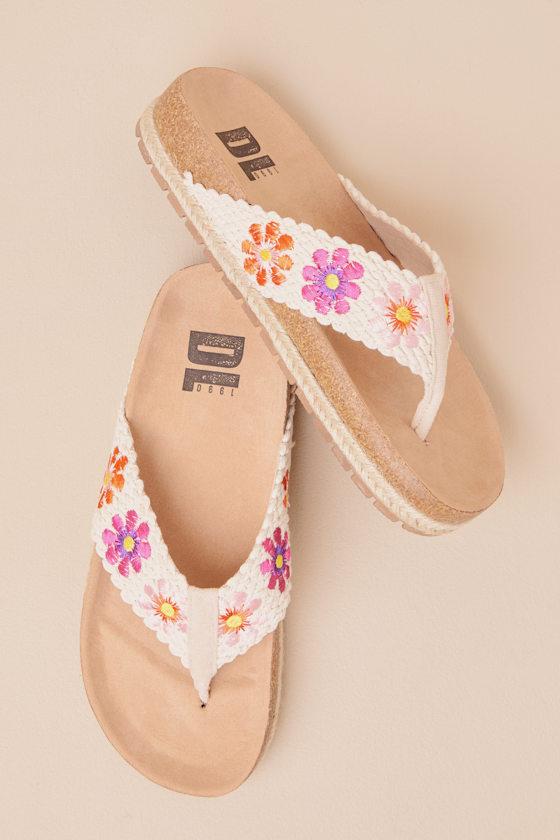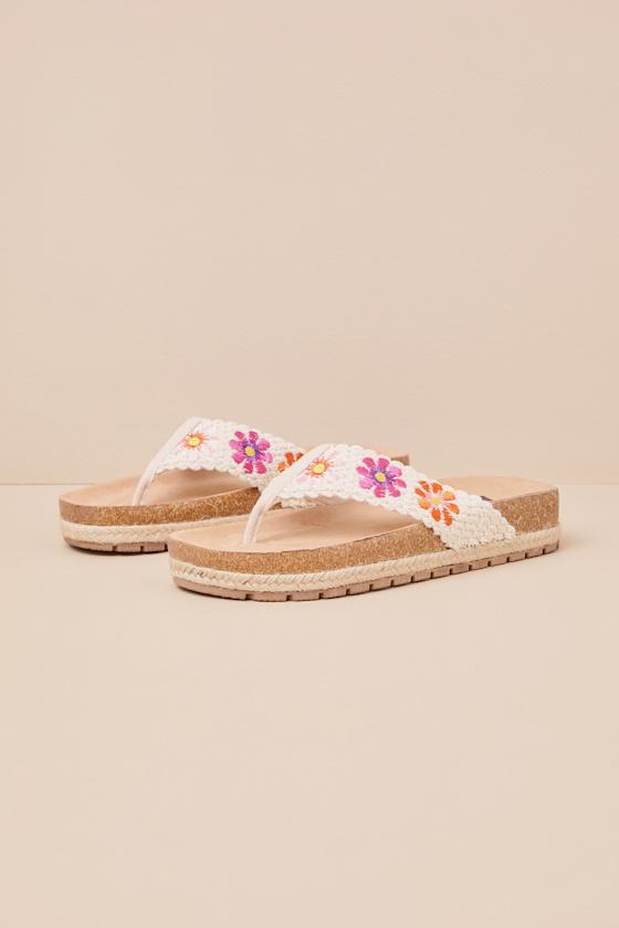 These Boho-chic crochet sandals by Dirty Laundry are so easy to style, you're sure to become a certified outfit repeater this summer. The simple slide-on silhouette boasts a classic thong upper adorned with vibrant flowers, all atop a contoured insole and a flatform sole accented with a band of braided raffia.