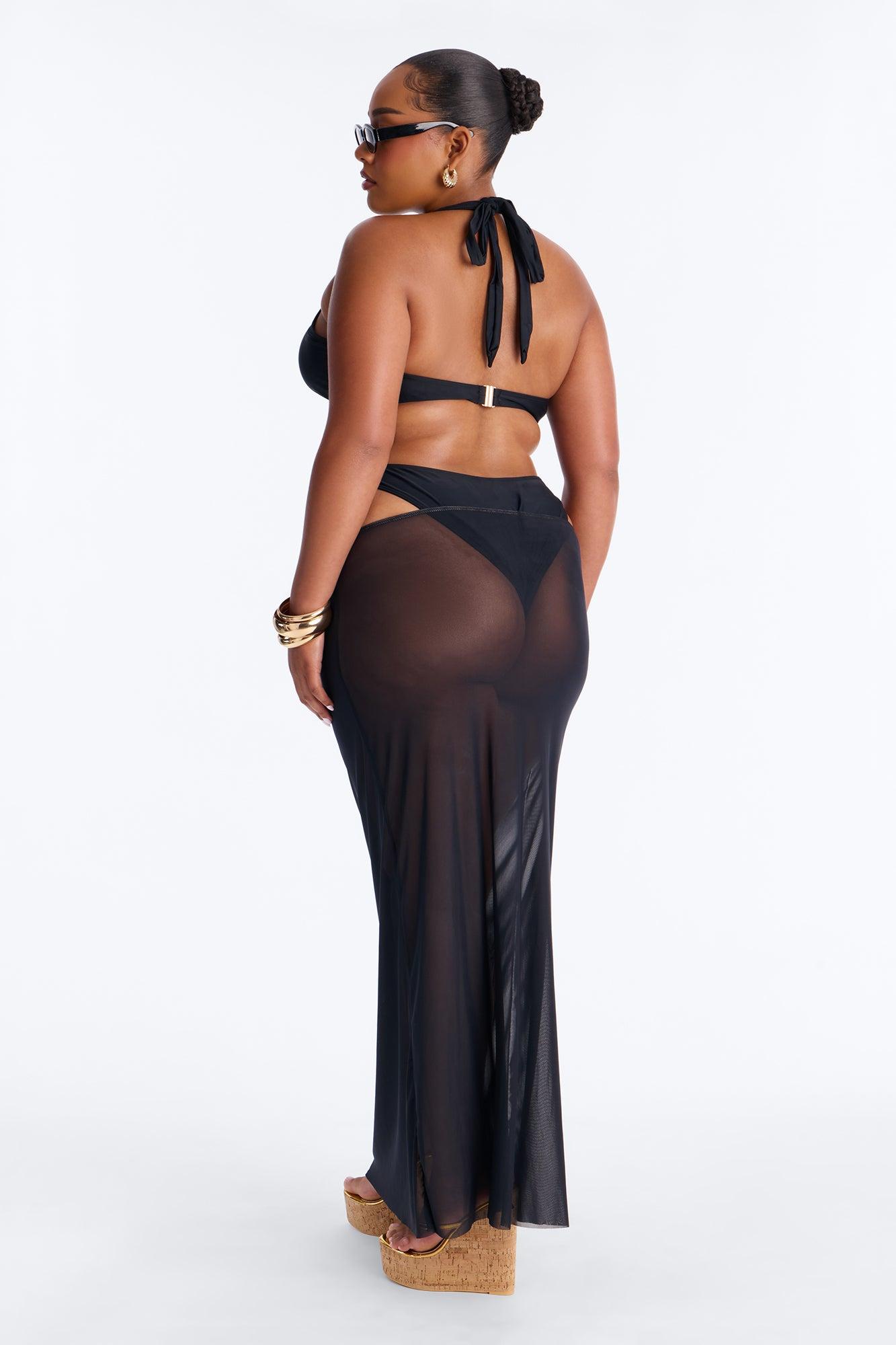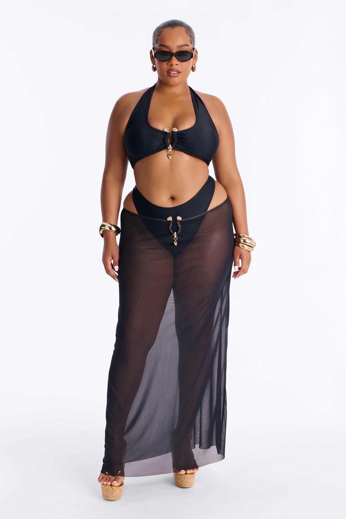 Available In Black. Bikini Cutout Detail Coverup Skirt Hardware Detail Final Sale Shell: 88% Nylon 12% Spandex Lining And Cover Up: 95% Polyester 5% Spandex Imported Available In Plus Sizes California Proposition 65WARNING: Cancer and Reproductive Harm - www.P65Warnings.ca.gov.