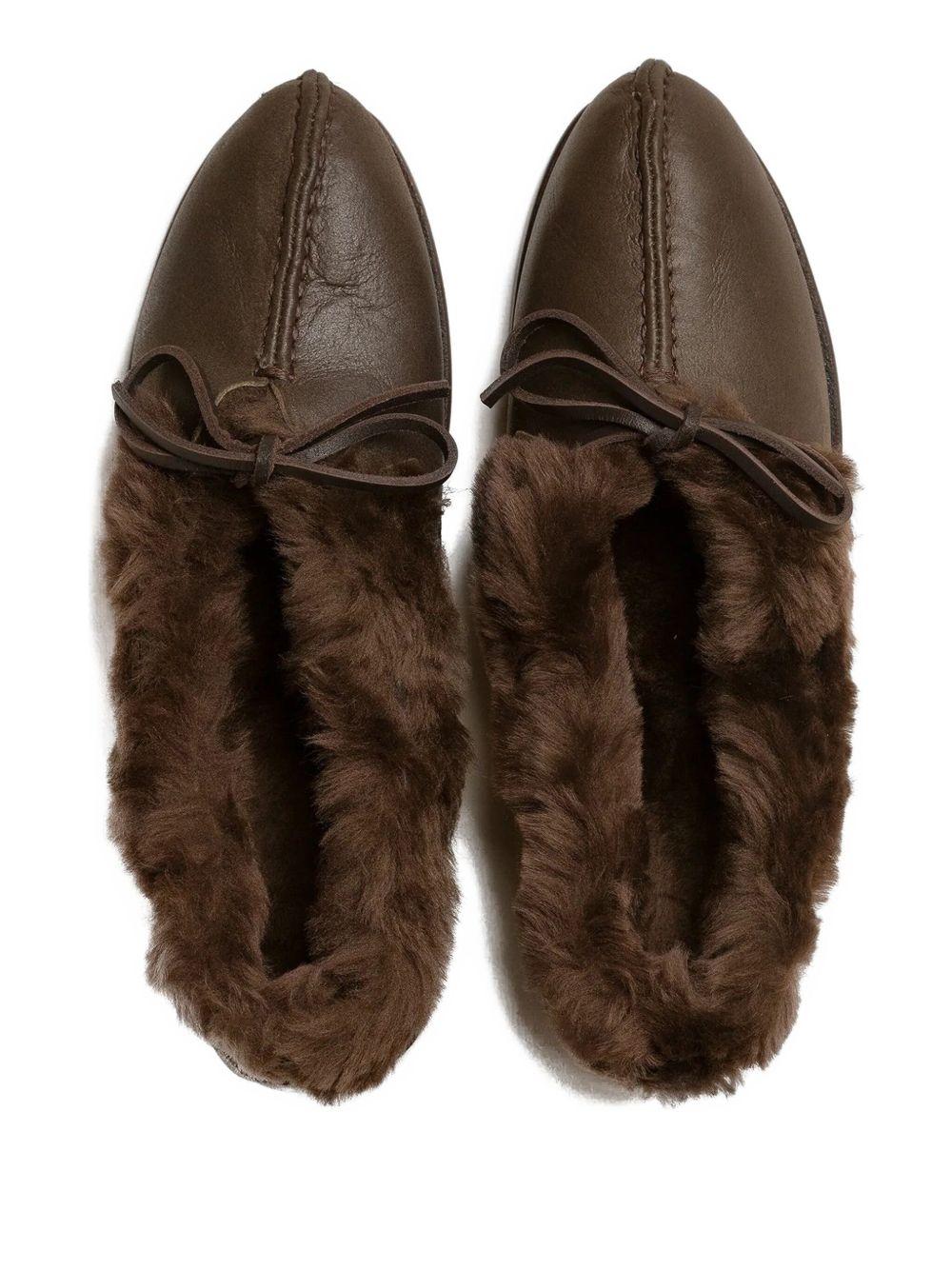 Hereu Tilla loafers | Brown | dark brown | leather | shearling trim | tie detail | flat sole | Leather/Lamb Shearling/Leather | Loafers | Shoes | Women