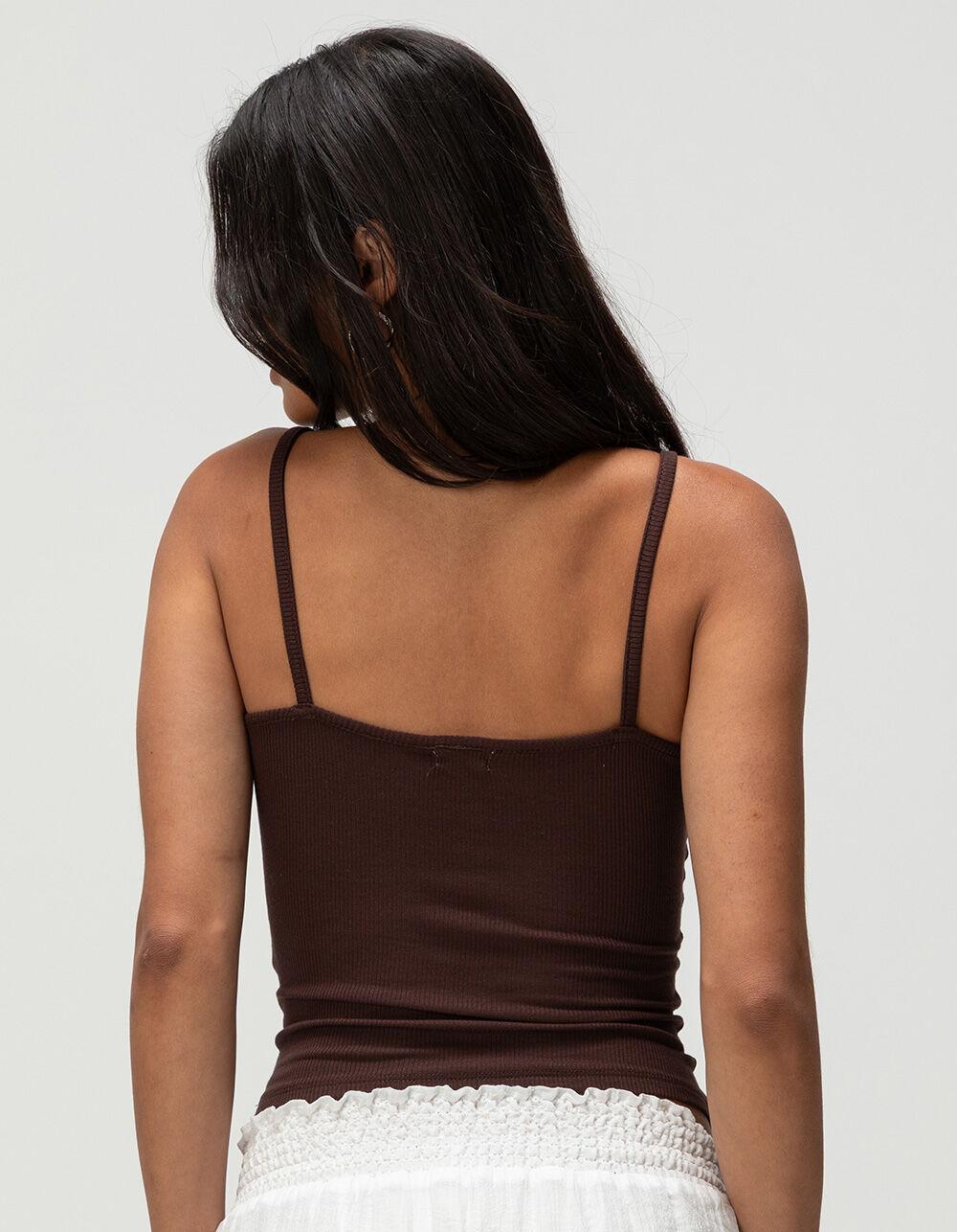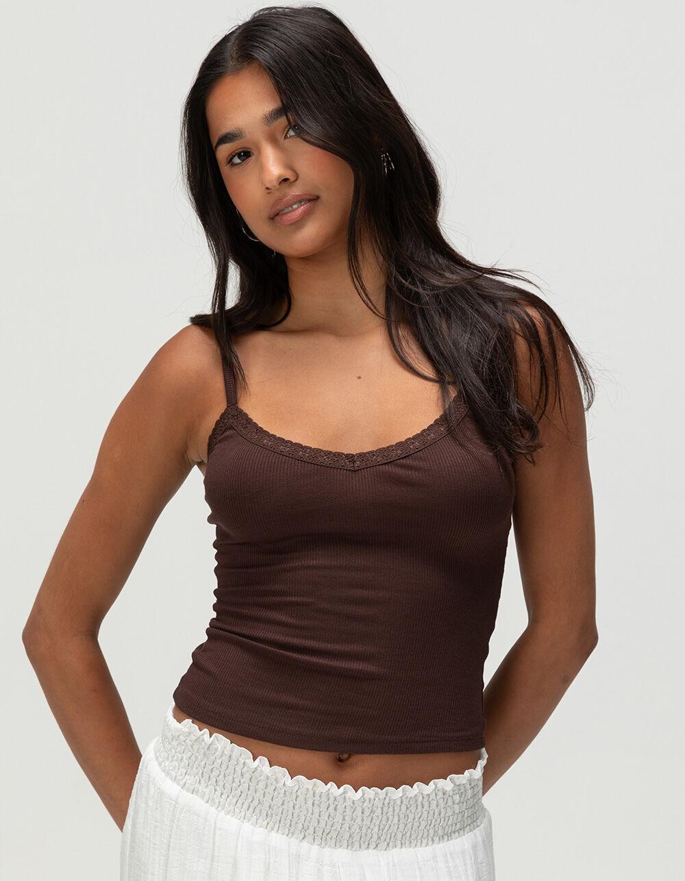 TILLYS Womens Lace Trim Cami - DARK BROWN
