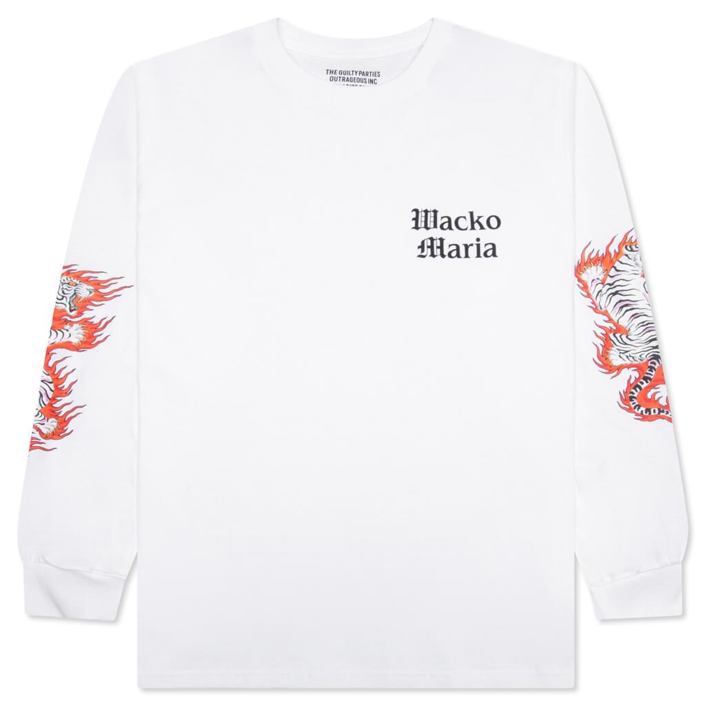 Wacko Maria introduces the Tim Lehi Crewneck L/S T-Shirt Type-1. Featuring a cotton construction, the silhouette utilizes ribbed detailing at the neckline and cuffs. Screen-printed branding resides at the front, while additional graphics at the sleeves finish the design. 100% cotton Ribbed trims Screen-printed branding Screen-printed graphics Style No: 22FW-WMT-LT02-WHT