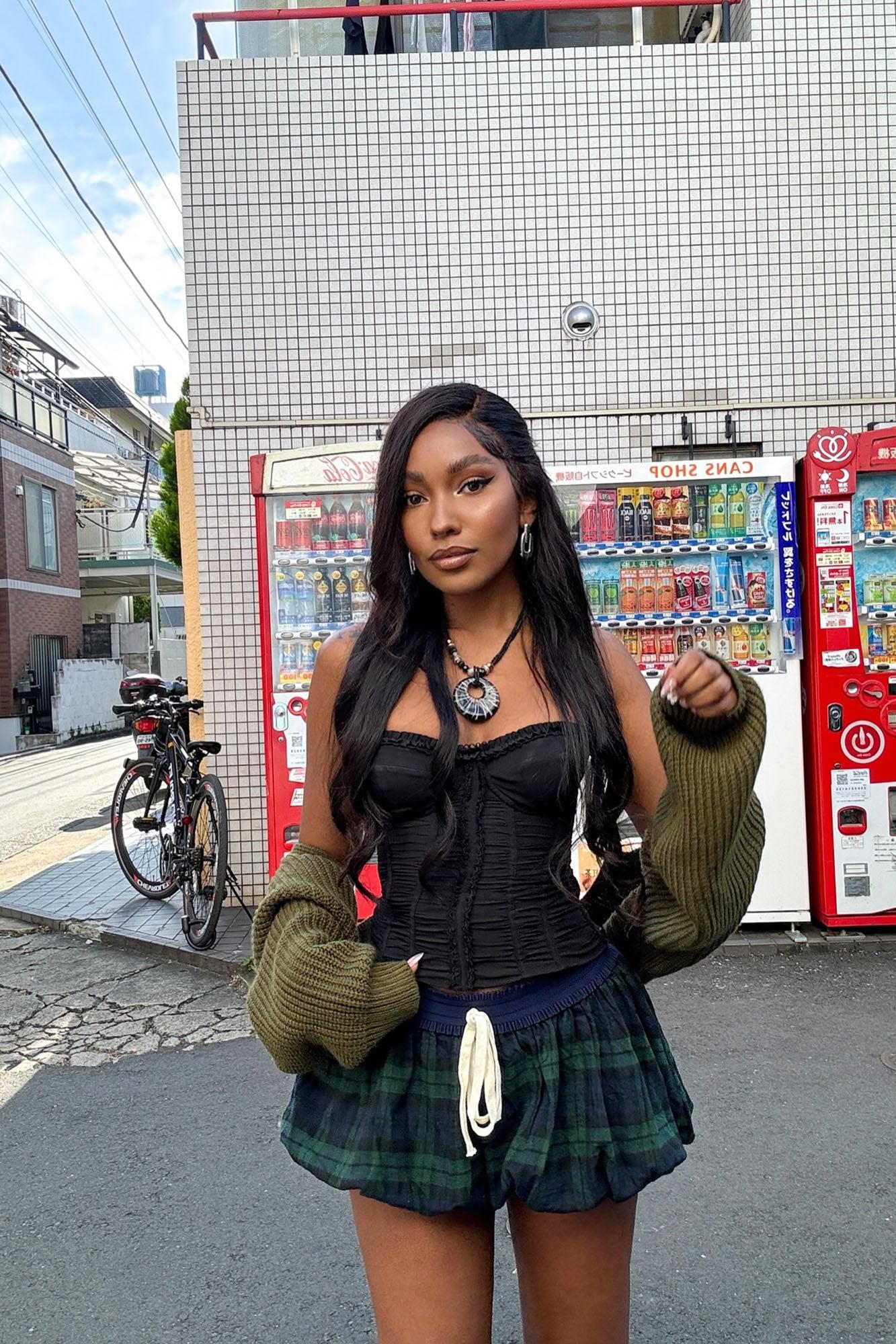 Time Waits Plaid Bubble Micro Mini Skirt - Hunter