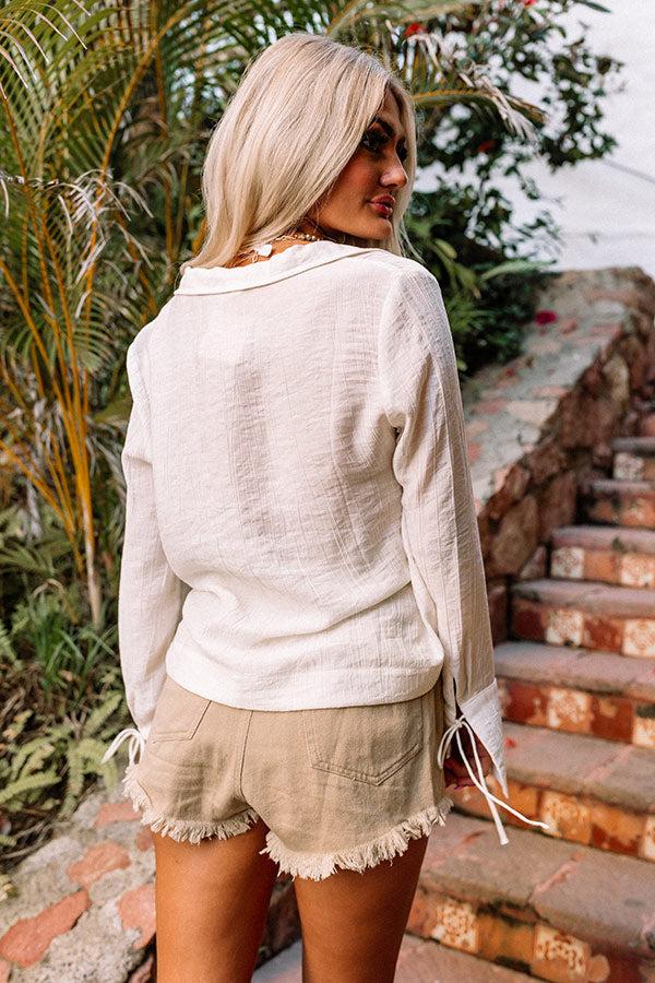 - Dressed up or down, this versatile top is the perfect addition to your wardrobe! - Lightweight, unlined material - A collared neckline - Front tie detail and button up front - Long sleeves with oversized cuffs and tie closure - A relaxed silhouette that ends in a straight hemline Measurements S : Bust 40", Hip 44", Length 23", Sleeve Length 24", Waist 42". M : Bust 42", Hip 46", Length 23.5", Sleeve Length 24", Waist 44". L : Bust 44", Hip 48", Length 24", Sleeve Length 25", Waist 46".
