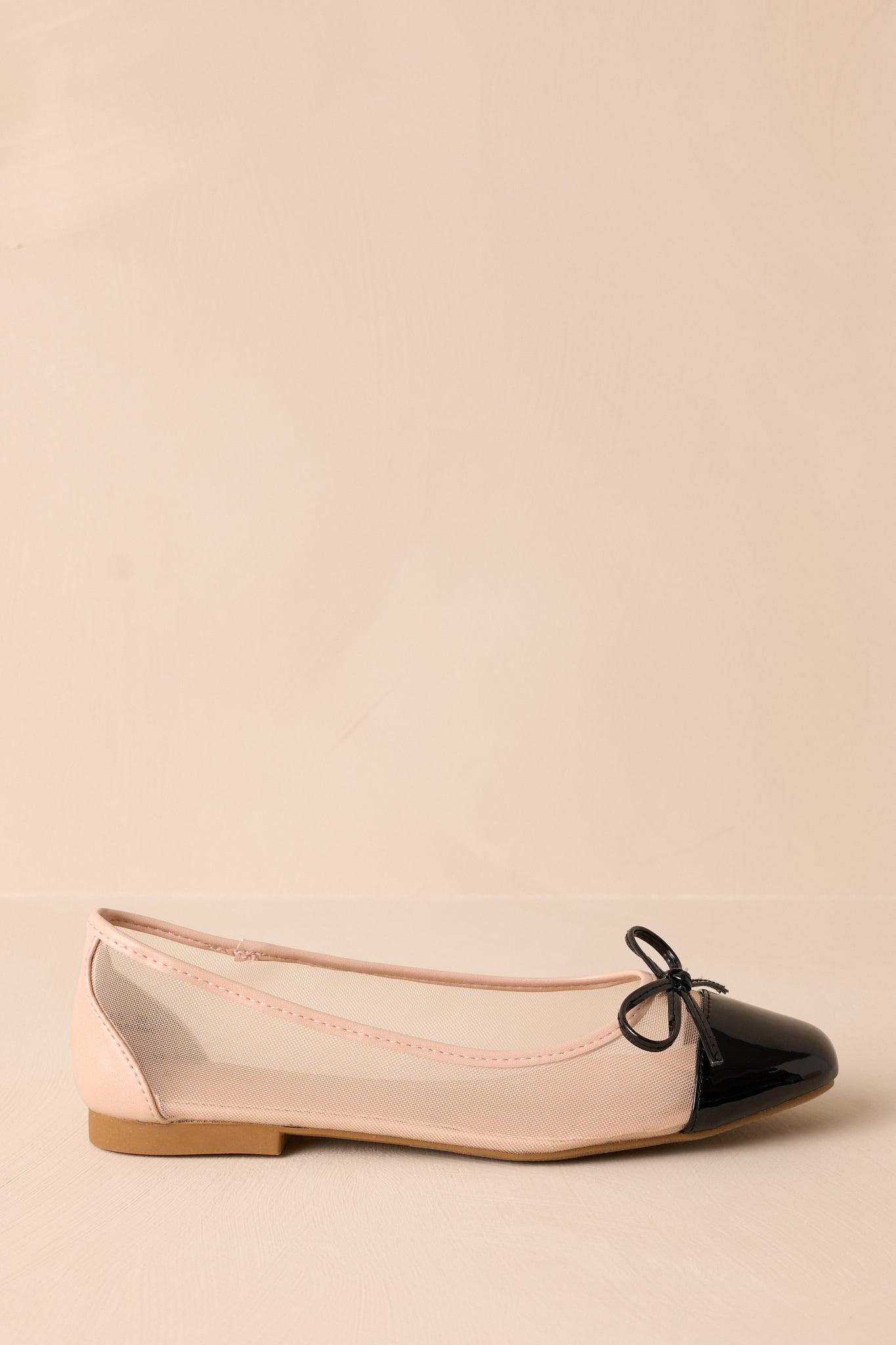 Step out in style with our Timelessly Charming Beige Mesh Flats! These lightweight and airy flats are perfect for any occasion. With a chic beige color and delicate mesh detailing, they add a touch of elegance to any outfit. Comfortable and versatile, they will quickly become your go-to shoe. (Step up your shoe game with our charming flats!) These beige mesh flats features a black rounded toe, a sleek black bow tie design, a beige trim and heel, cushioning in the middle of the shoe and mesh sides.