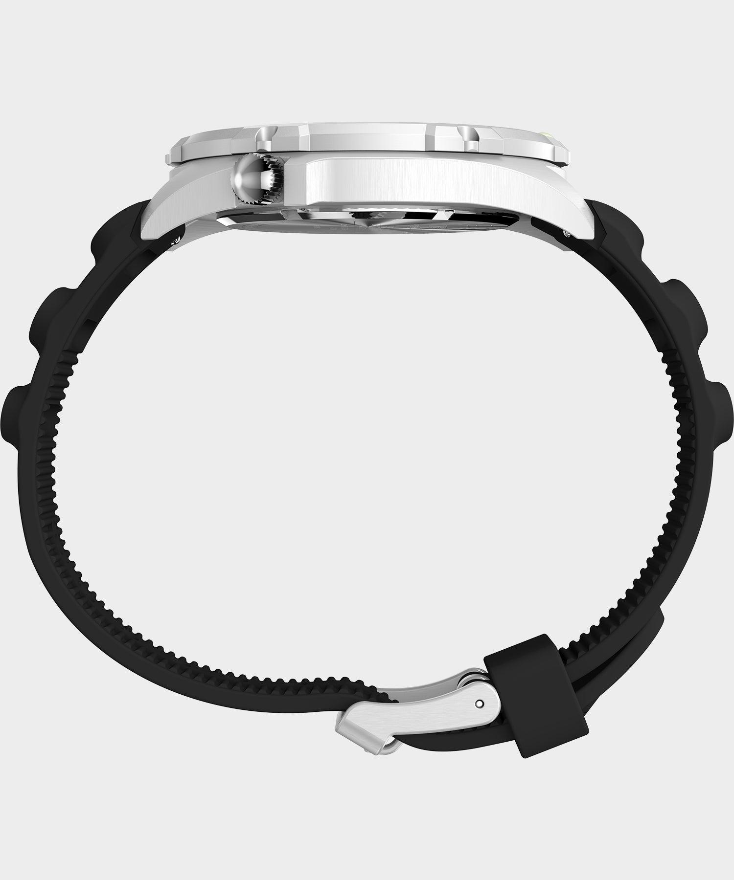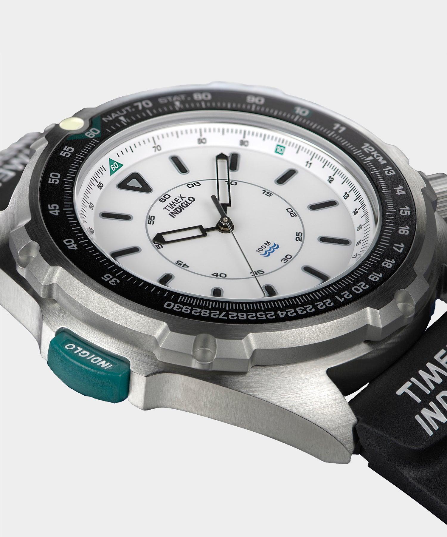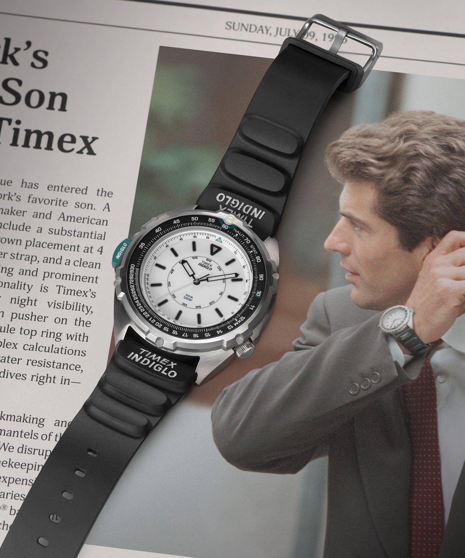 Timex is bringing back a bold timepiece that’s no stranger to the spotlight. Favored by a certain '90s icon who knew a thing or two about leading with style, the Timex 1995 Intrepid Reissue is a modern-day reissue of a dive-inspired timepiece from the ‘90s. This iconic reissue comes to life through the combined efforts of Timex, Dimepiece, and Foundwell—three forces united by a shared passion for timeless design. Its defining features include a substantial 46mm stainless-steel case, unique crown placement at 4 o’clock, a robust black synthetic rubber strap, and a clean white dial with an angled reflector ring and prominent hour markers. Adding to its functionality is their INDIGLO® backlight for night visibility, activated by a dedicated bright green pusher on the case side beside 9 o’clock, and a slide rule bezel featuring logarithmic scales that allow you to tackle calculations such as multiplication, division, percentages, and other unit conversions. And with 100m of water resistance, this timepiece is made for the man who dives right in—whatever the pursuit. Limited Edition Stainless Steel Case Quartz Movement Mineral Glass Lens Slide Rule Top Ring Synthetic Rubber Strap Luminant Hands INDIGLO® Back Light Water-Resistant Up to 100 Meters 46mm Case, 22mm Lug Style TW2Y05800VQ Timex was originally founded in 1854 in Waterbury, CT as the Waterbury Clock Company — the business was relaunched in 1950 under new ownership (the name is a portmanteau of Time magazine and Kleenex). Waterbury is in Connecticut's Naugatuck River Valley, which, at the time, was the center of America’s clockmaking industry and was known as the "Switzerland of America.” Timex watches combine precision European clockmaking techniques with streamlined designs and American ingenuity and durability, all of which helped them become the heritage brand they are today.