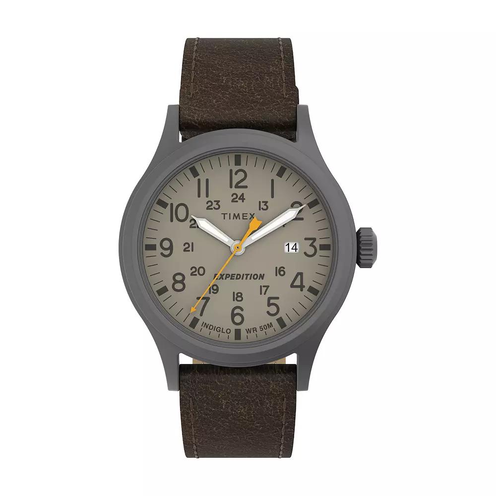 Texas State Bobcats This mens Timex Expedition Scout watch is the perfect accessory for all of your casual looks.Click on this JEWELRY & WATCHES GUIDE to learn about fit, styles, materials and more! FEATURES Date window Crown type: push-pullDISPLAY Matte dial Illumination: Indiglo EL backlight Face cover material: mineral crystalCASE Material: brass Caseback material: stainless steel Diameter: 40 mmBAND Band type: leather strap Clasp: buckle Circumference: 142 mm - 205 mm Width: 20 mmDETAILS Water resistance: 50 meters Movement: quartz Power: battery Packaging: boxed Warranty: manufacturers 1-year limited For warranty information please click here Model number: TW4B23100JT Size: Large. Color: Brown. Gender: male. Age Group: adult.