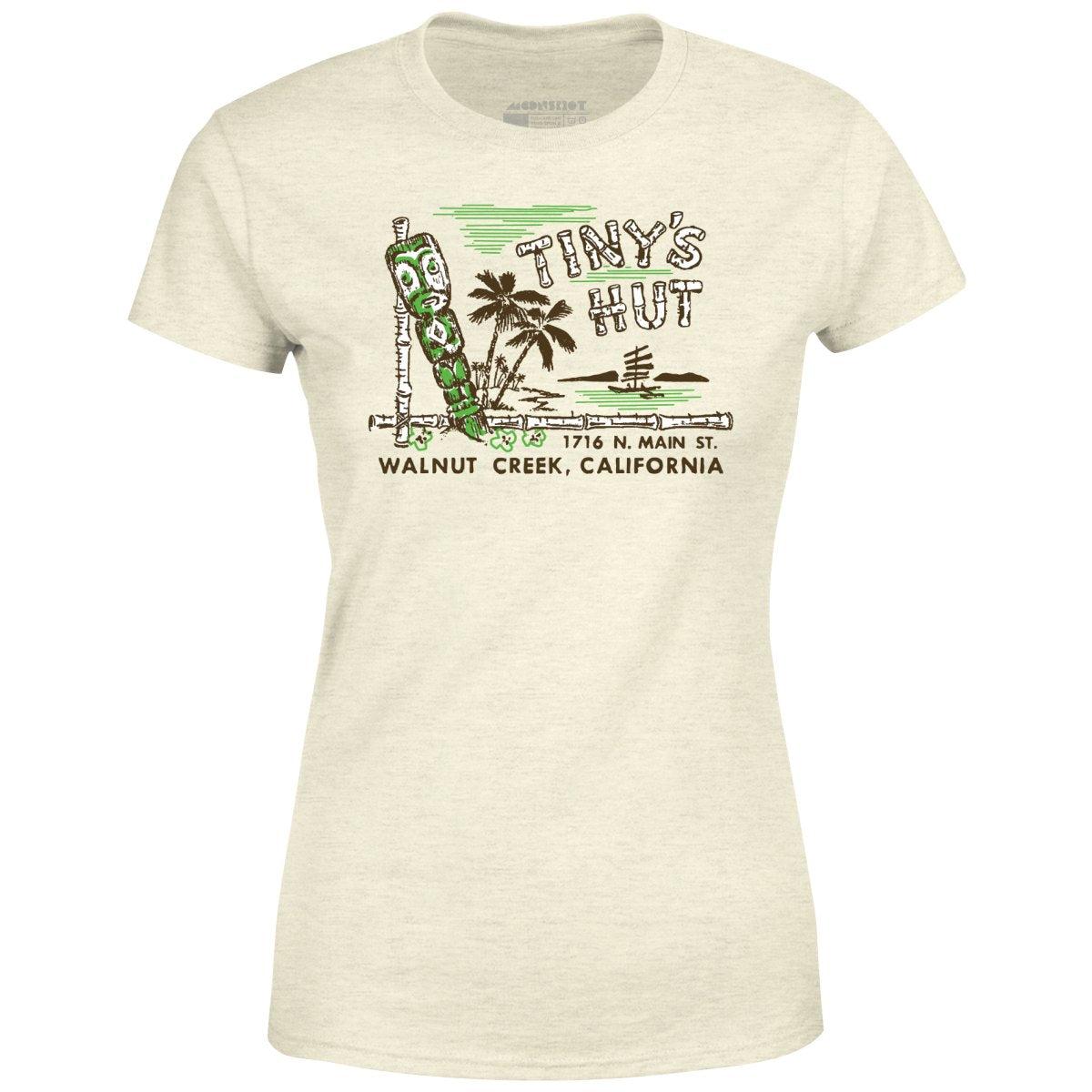 Tiny's hut was a vintage Tiki Bar located in Walnut Creek, CA in the 1940s and 1950s. This Tiki design is part of our retro collection. Inspired by the iconic vintage Polynesian themed Tiki Bars and Restaurants of yesteryear. Printed on our super soft 100% airlume ring-spun & combed cotton women's T-Shirt. Or upgrade to our Luxury 52/48 cotton/poly vintage heather edition for an even softer classic look. We print & ship all of our high quality graphic tees in the USA.