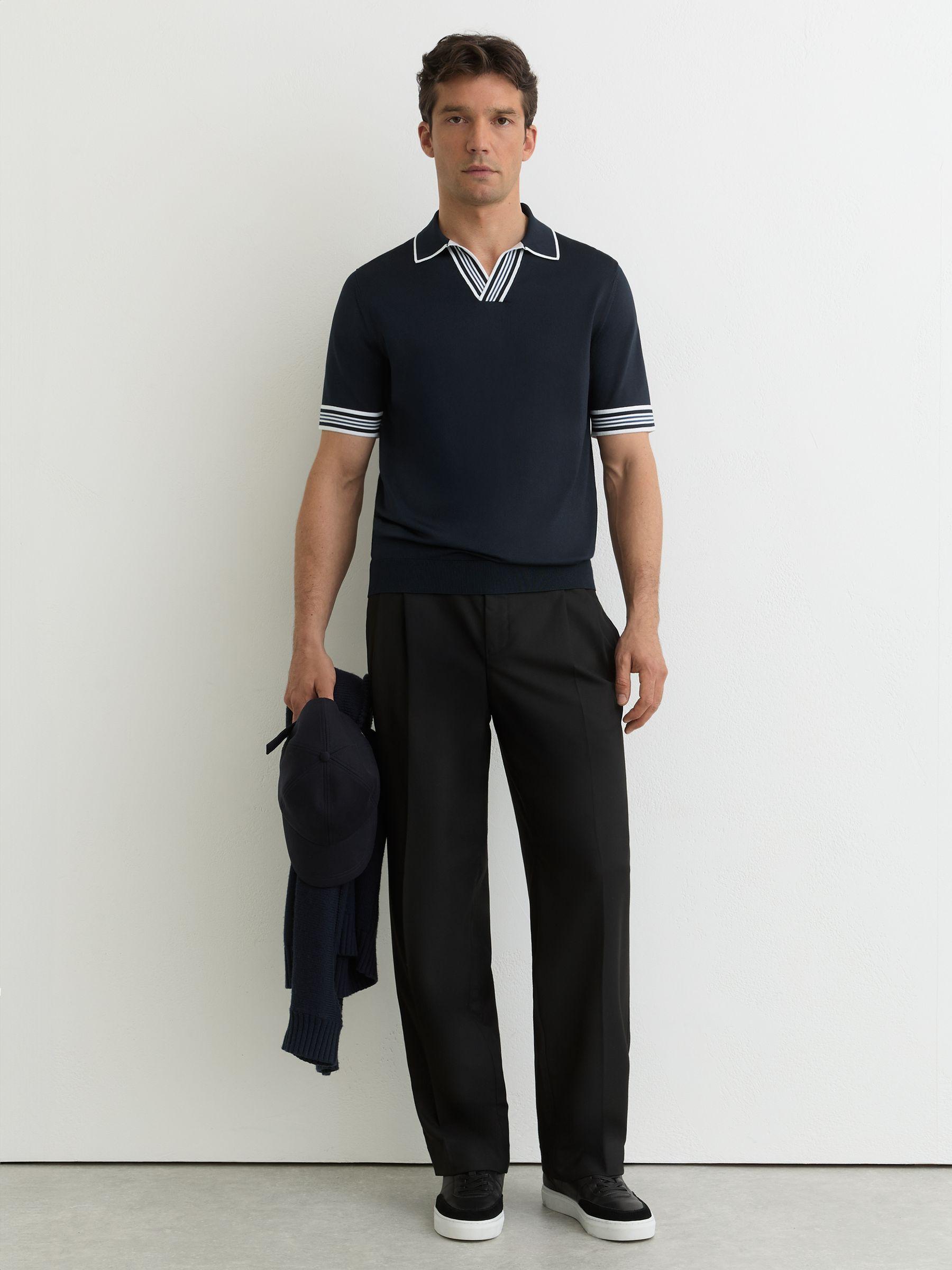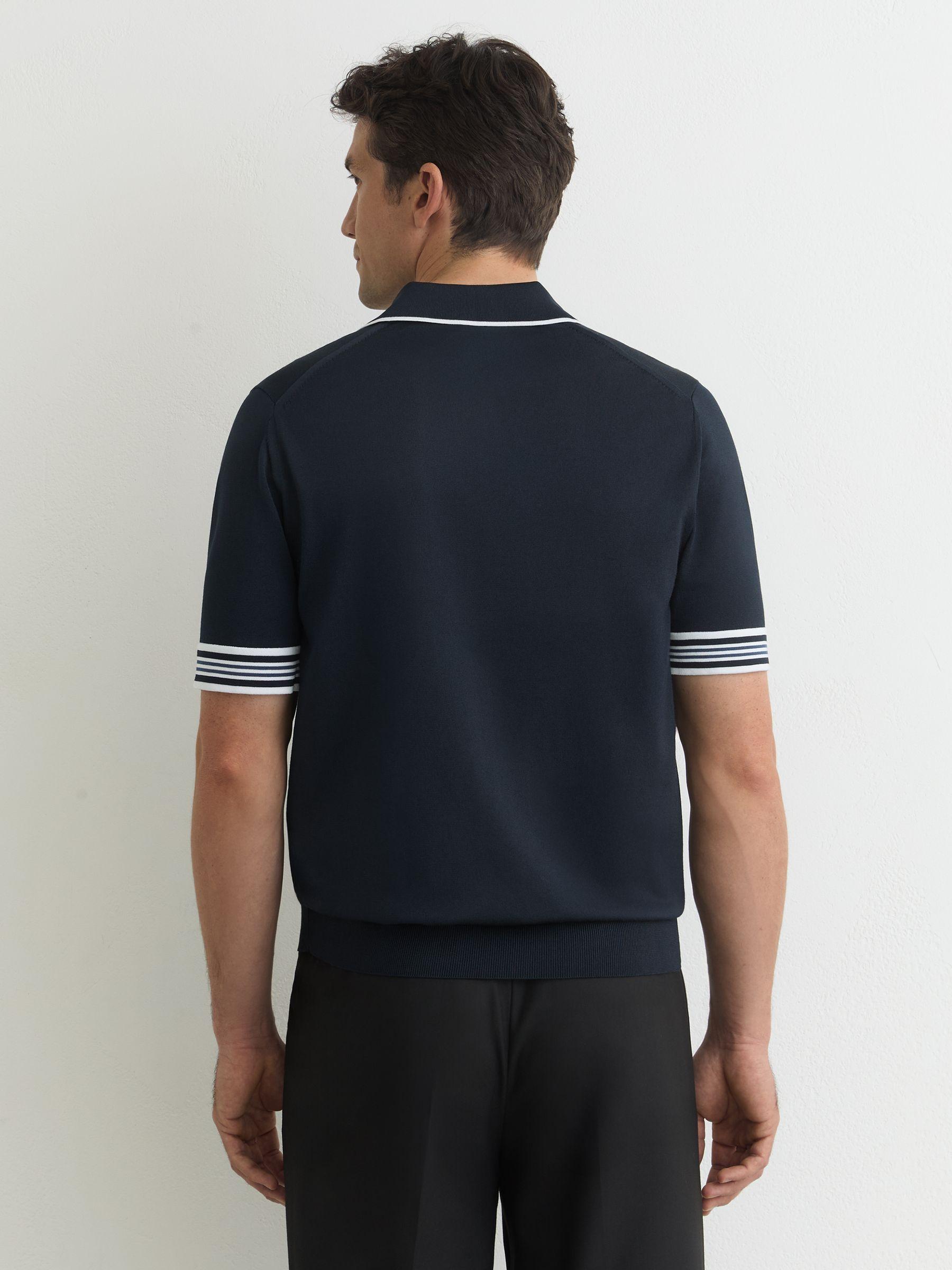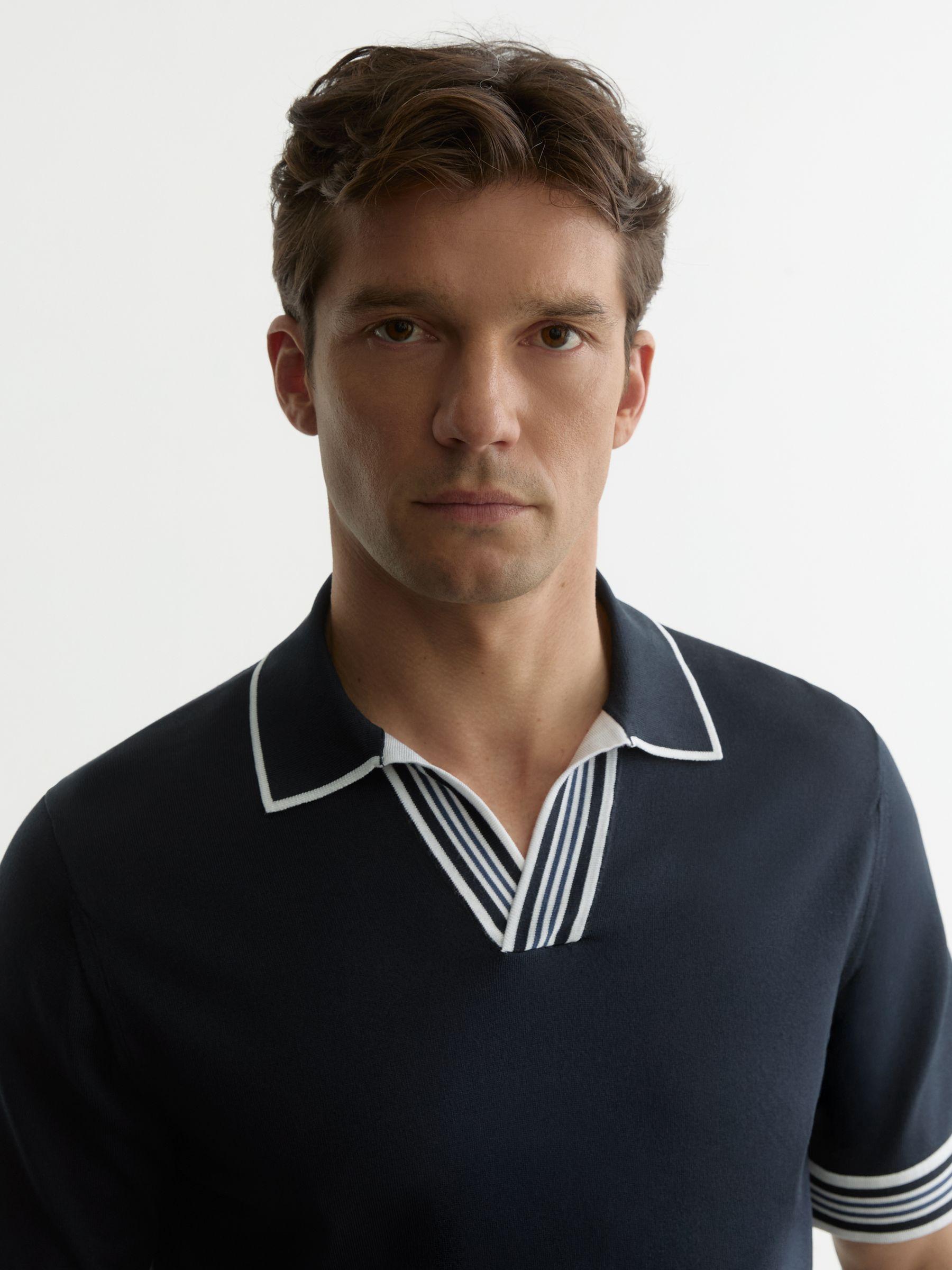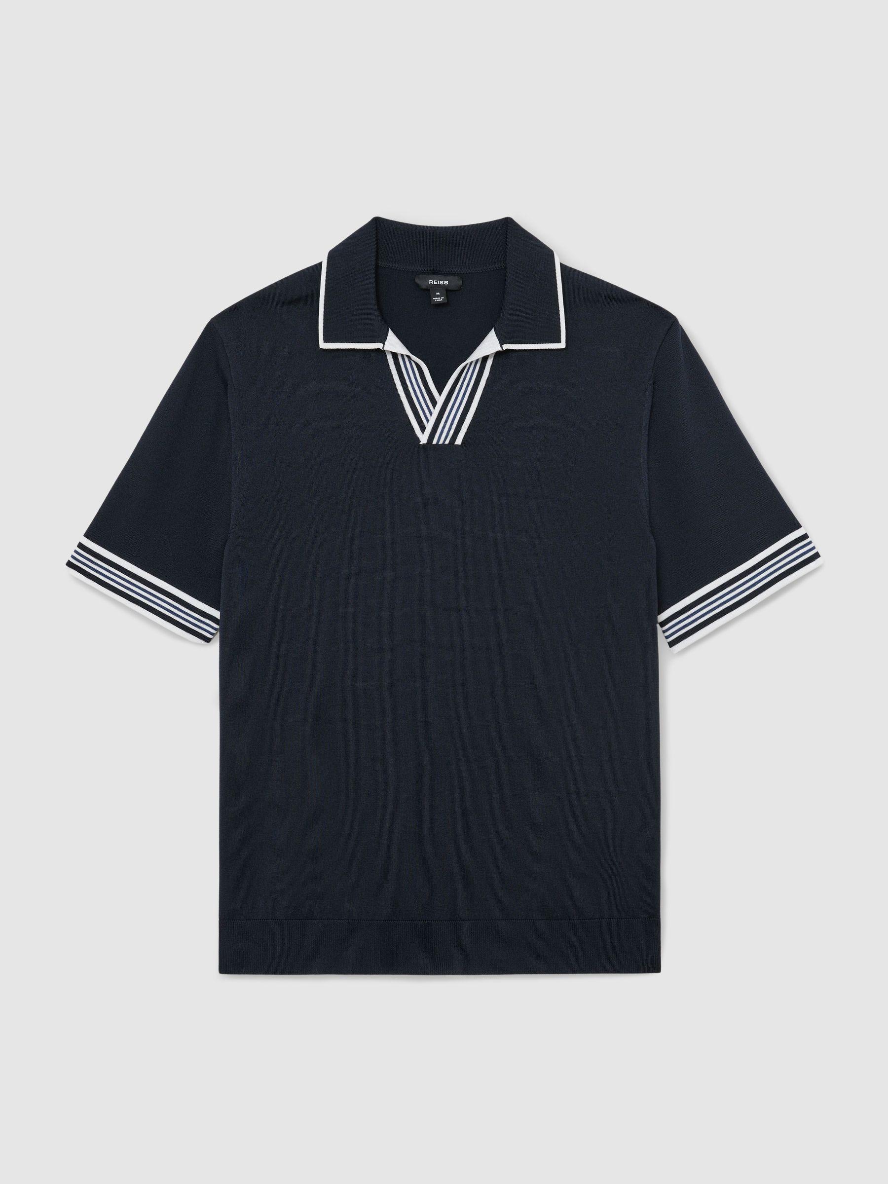 Tipped Open-Collar Knitted Polo Shirt in Navy
