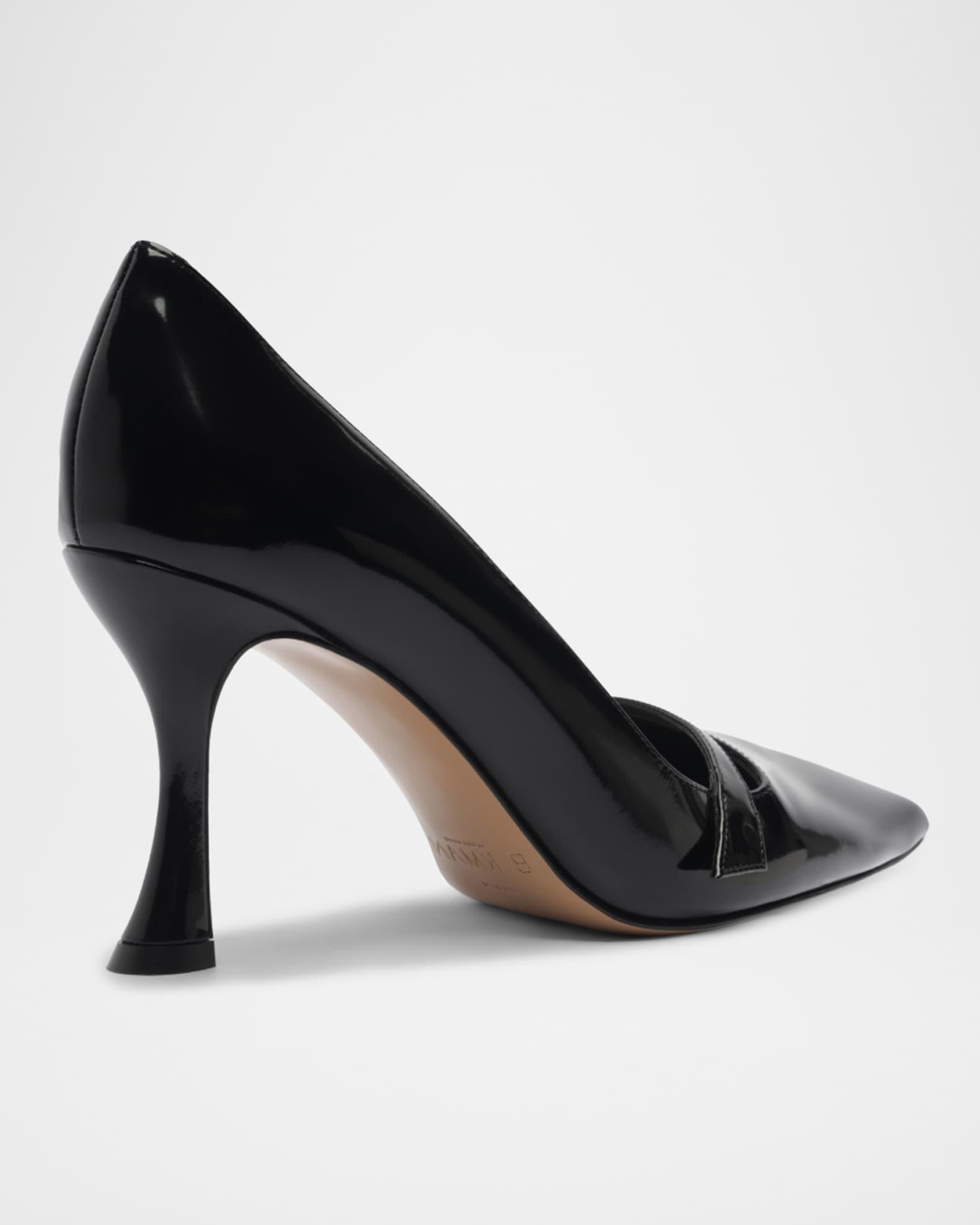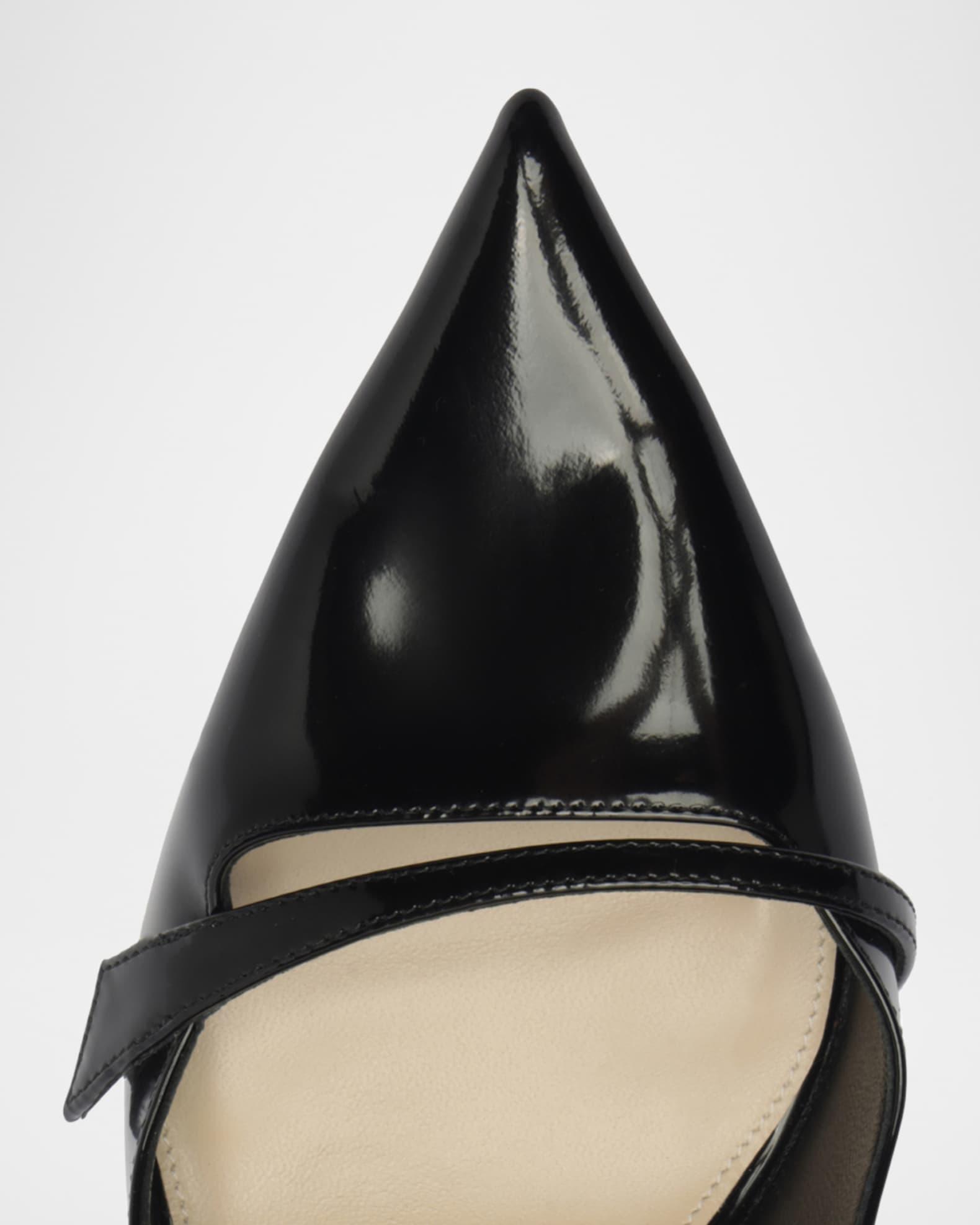 Alexandre Birman "Tita" sleek pumps crafted in premium patent leather 3.25 in / 85 mm stiletto heel Sleek pointed toe Single vamp strap Slip-on style Leather outsole Lining: Leather Spot clean Made in Italy