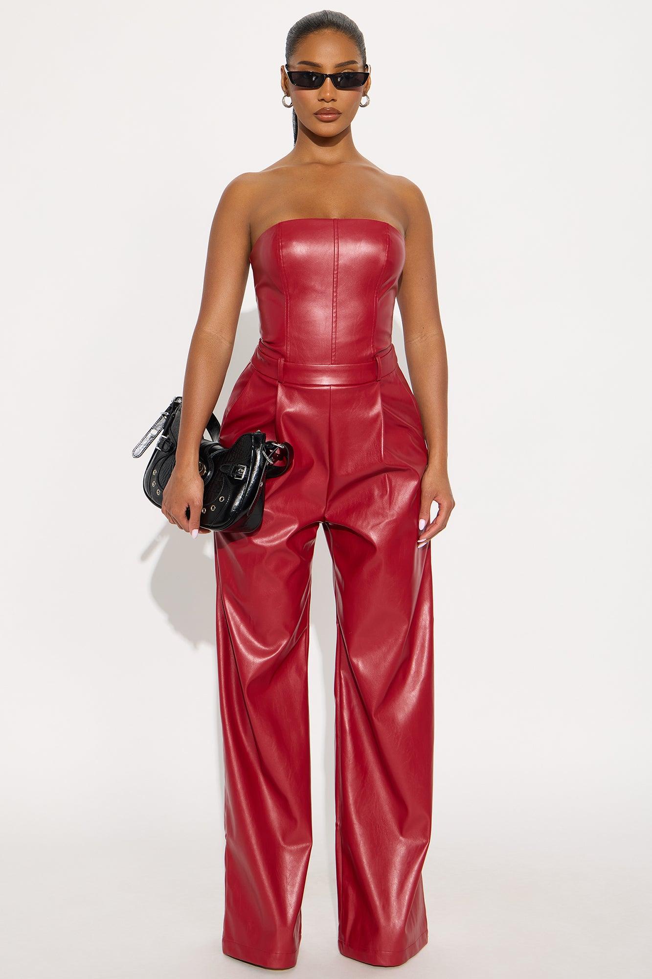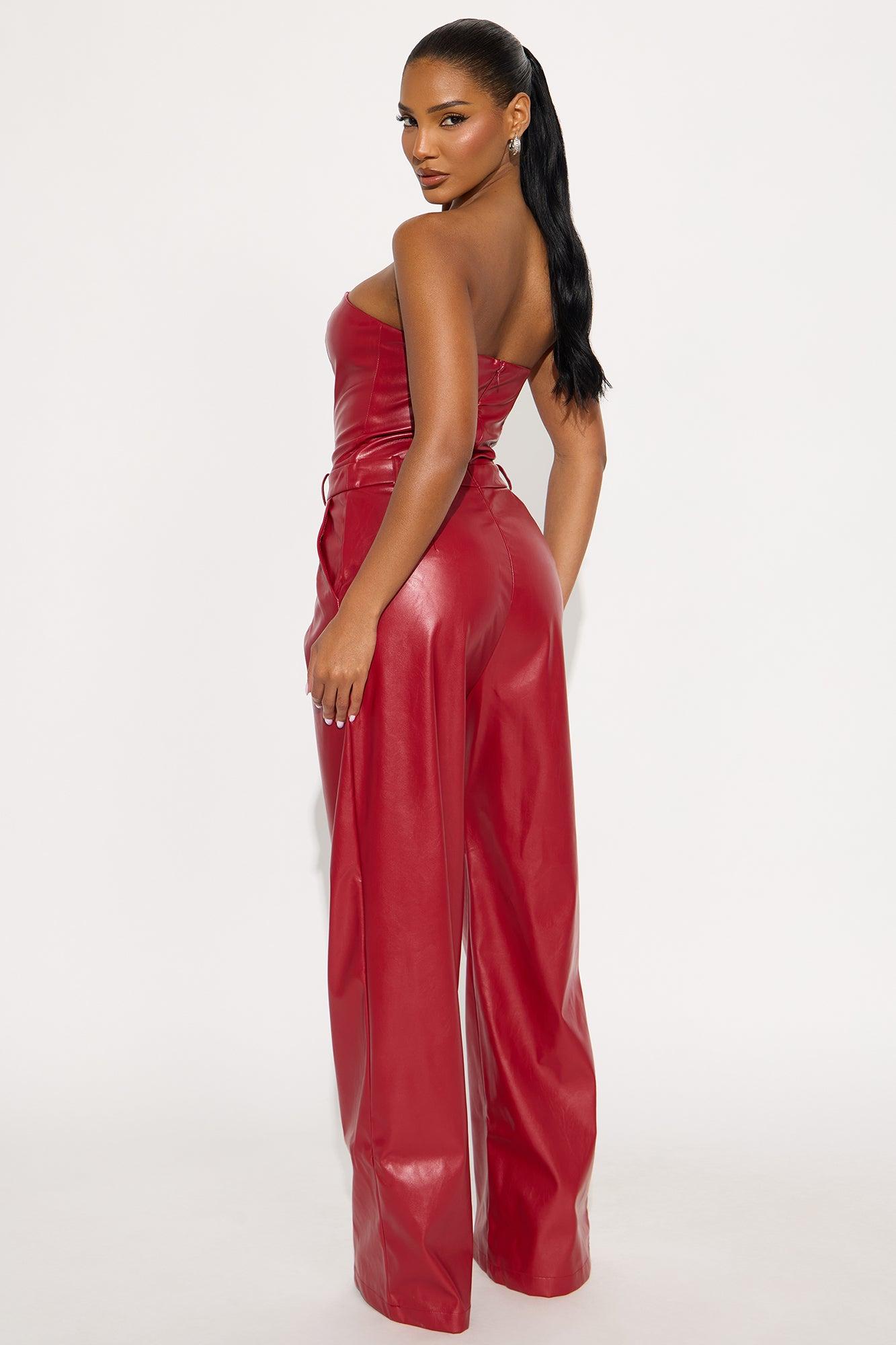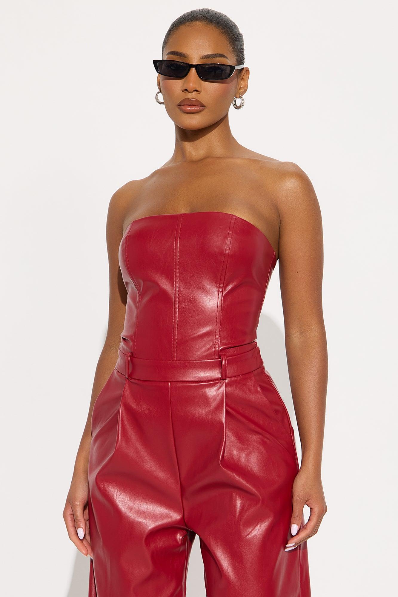 To The Max Faux Leather Corset Jumpsuit - Red Female