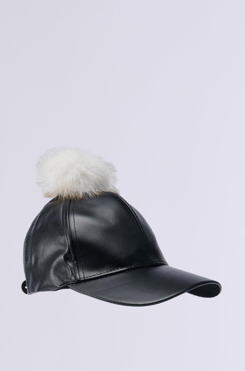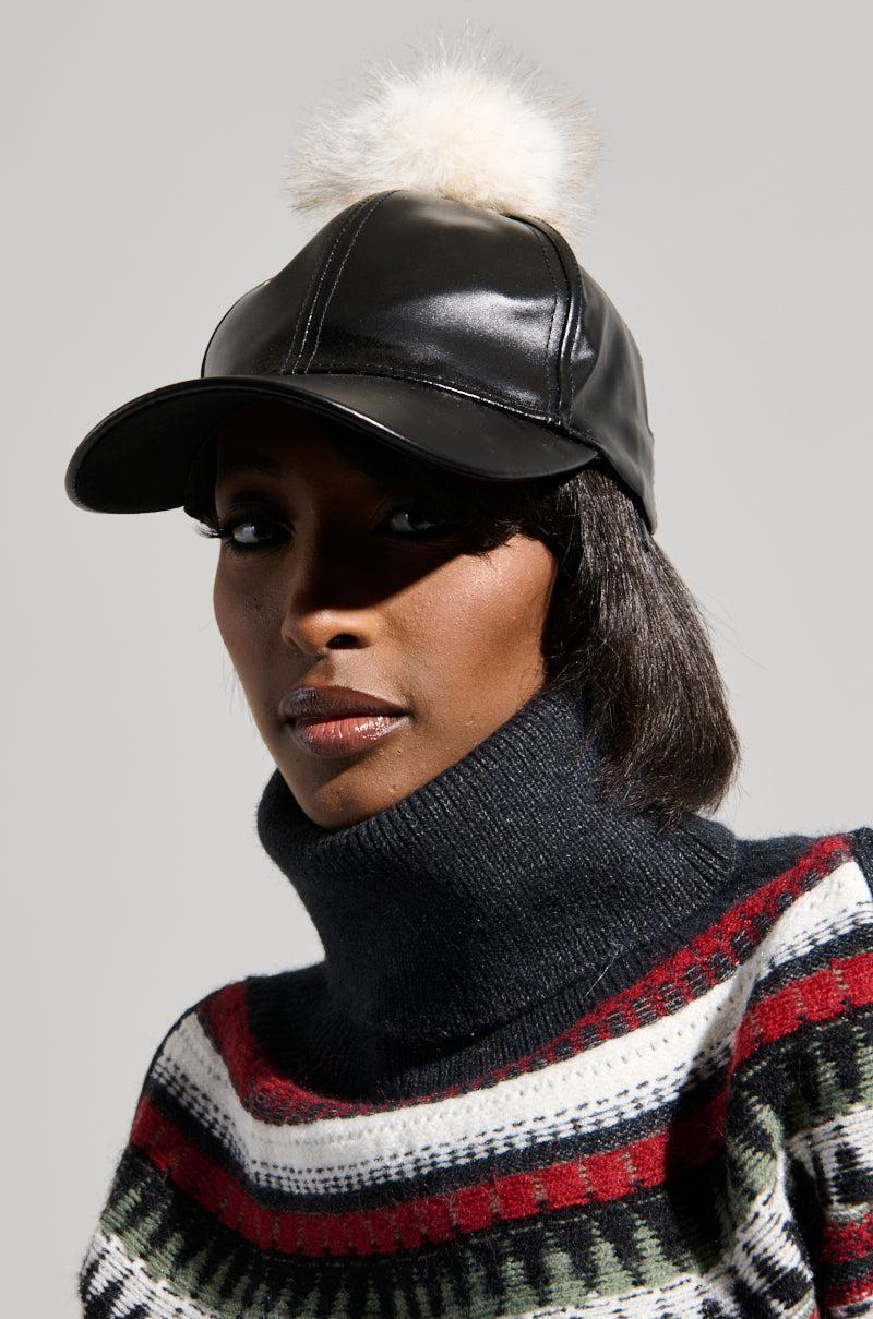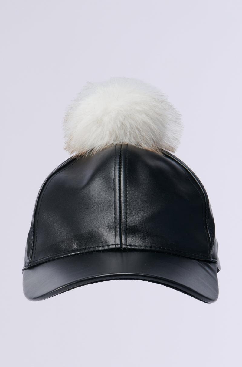 Keep cozy this chilly season with The AKIRA Label Toastie Faux Fur Pom Hat. This chic accessory is crafted from a faux leather base and features a classic baseball cap silhouette, a six-panel design, an adjustable strap in the back for a custom fit, and a wide curved brim. Complete with a faux fur pom-pom detail at the top of the head. - Hat Shell: 100% Polyester, Faux Fur Trim: 100% Polyester- Imported (all measurements approximate from size O/S)- 22” Head Circumference- 8” Head Diameter Product ID: 440035