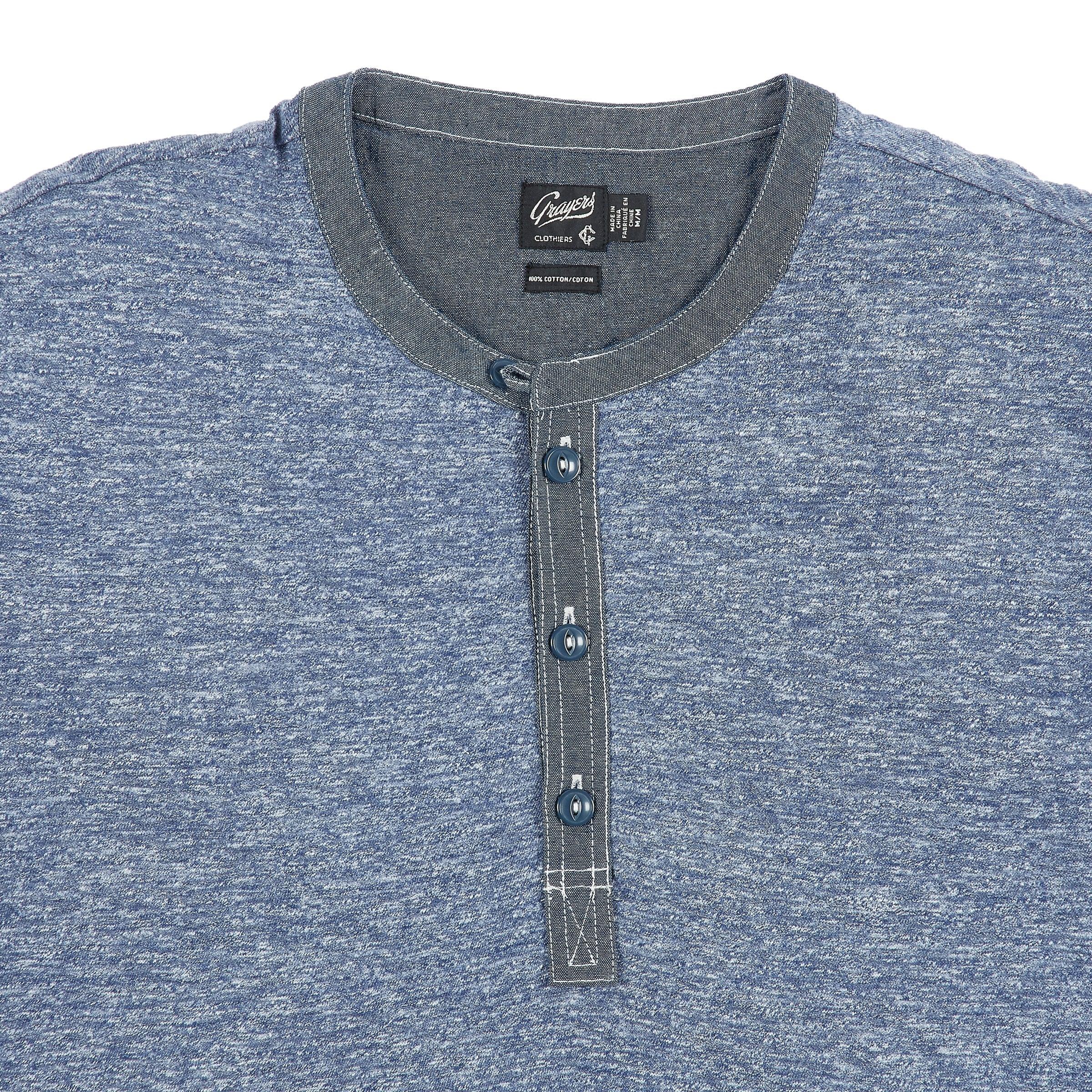 It wouldn't be a Grayers henley if we didn't put all of our usual attention to detail when designing our short sleeve Todd. We have spun rich high and low tones of heather colors with thick and thin cotton yarns to create a blue heather slub texture. Then we finely finished the henley with a chambray placket and yoke, fisheye buttons and a curved hem to make it something special. Short sleeve Chambray placket and yoke Fish eye buttons Curved hem 100% Cotton IMPORTED Style with Newport Canvas Stretch Pants - Light Saddle THIS ITEM IS FINAL SALE. NO REFUNDS OR EXCHANGES ALLOWED. This product will ship within 4 to 5 business days. It may arrive separately from other products in your cart. THIS ITEM IS FINAL SALE. NO REFUNDS OR EXCHANGES ALLOWED.