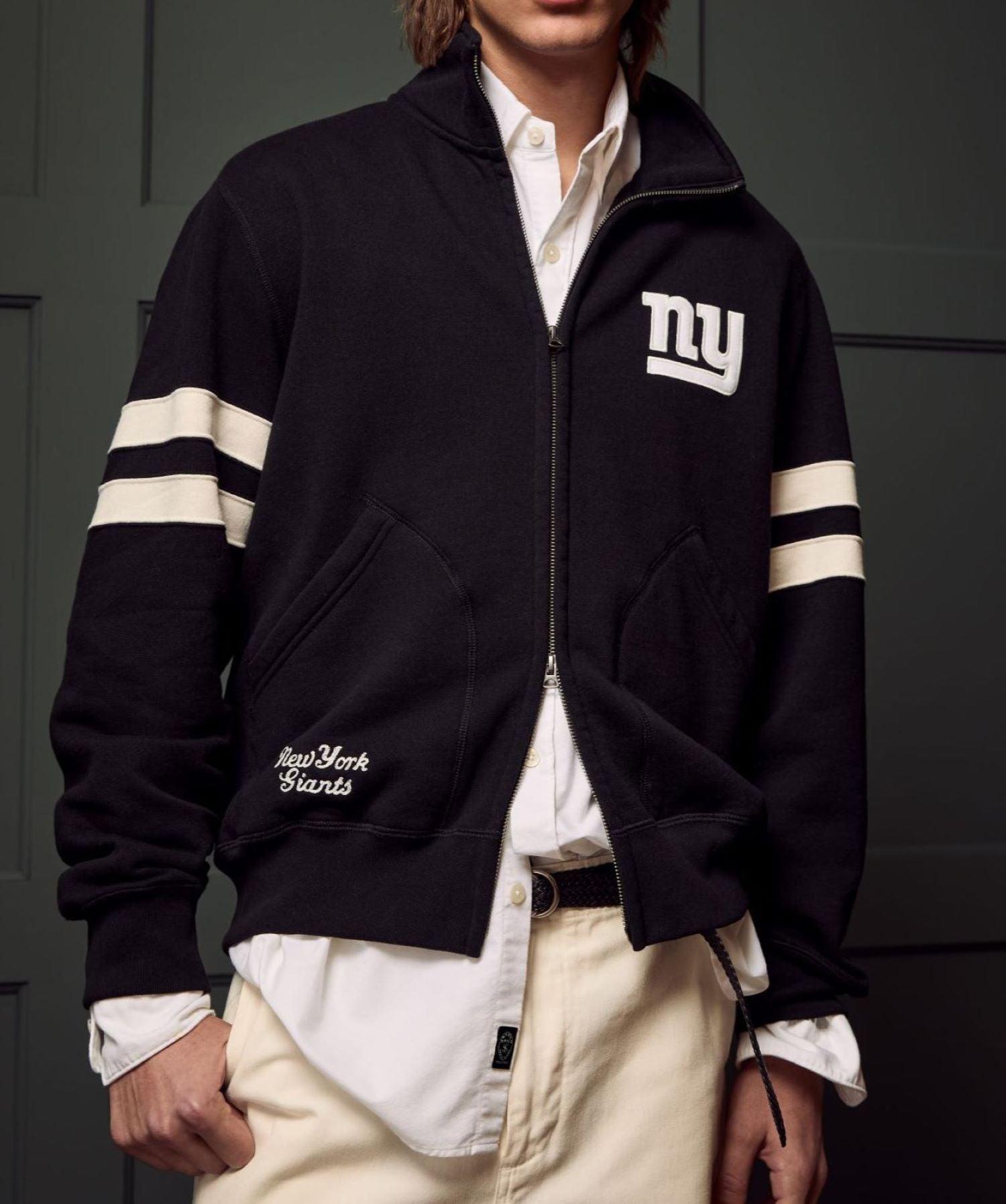 Say hello to a new collaboration from Todd and the experts at Fanatics that blurs the line between luxury and sport, and rep your favorite New York team in this Oversized Full-Zip Fleece. It has a relaxed fit perfect for gamedays, weekends and more that’s made for easy layering: boxy and off the shoulders, with a slight taper at the waist. The look is inspired by some of our favorite retro varsity styles from the 80s and 90s, which carries through in the pieced-in sleeve stripes, vintage chenille logo patch at the chest and chain-stitching at the pocket. The super soft brushed midweight fleece ensures you’ll enjoy comfort every gameday, and is made in Canada and cut and sewn at WS, a family-owned factory outside Toronto that has been making sweats the old-fashioned way for decades. Premium details include a two-way zipper front and patch pockets. 80% Cotton, 20% Polyester Relaxed Fit 16 oz Fleece Chenille Team Patches at Chest Chain-stitched Logo at Pocket Full-Zip Mock Neck Patch Pockets Ribbed Trim Made in Canada