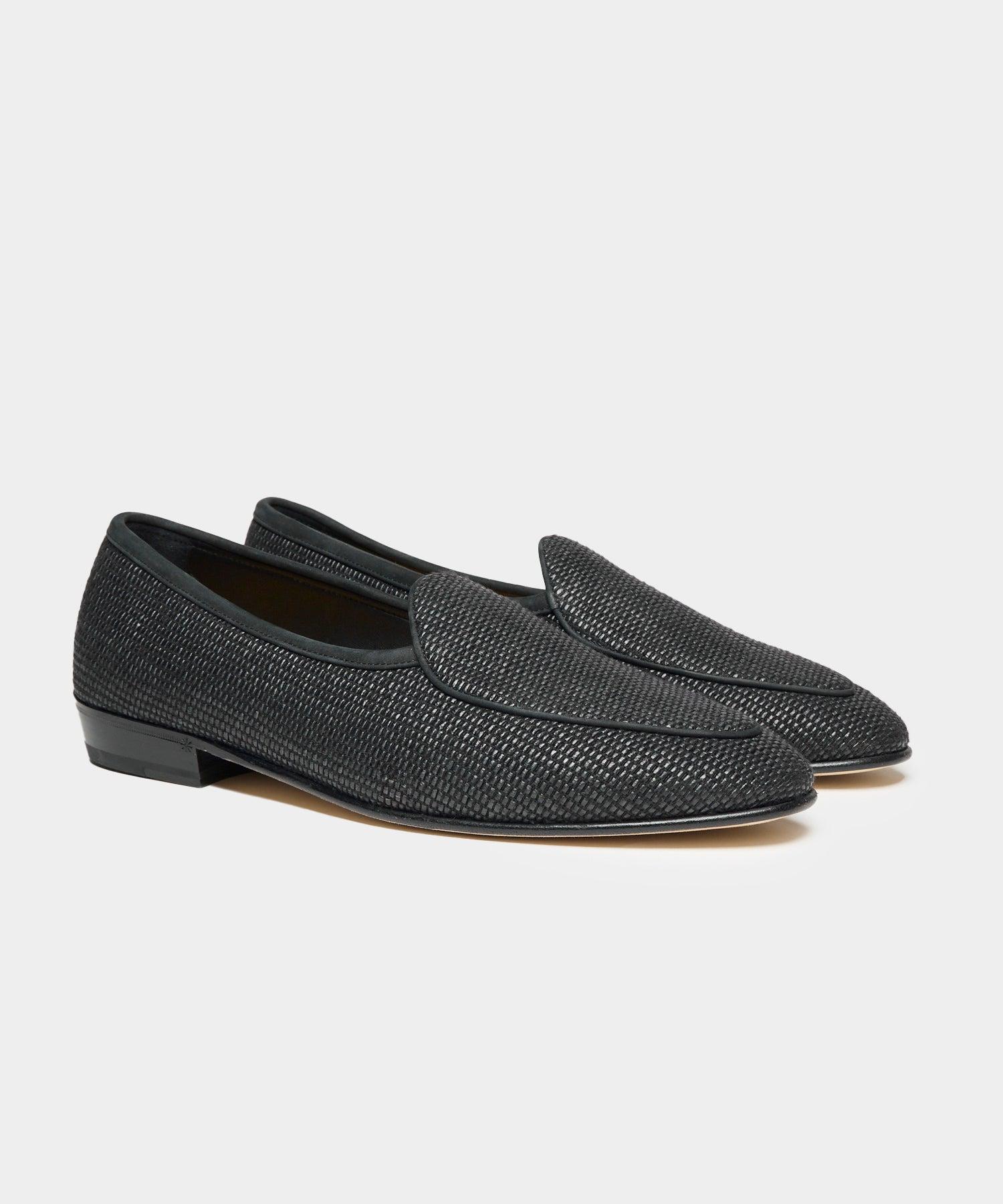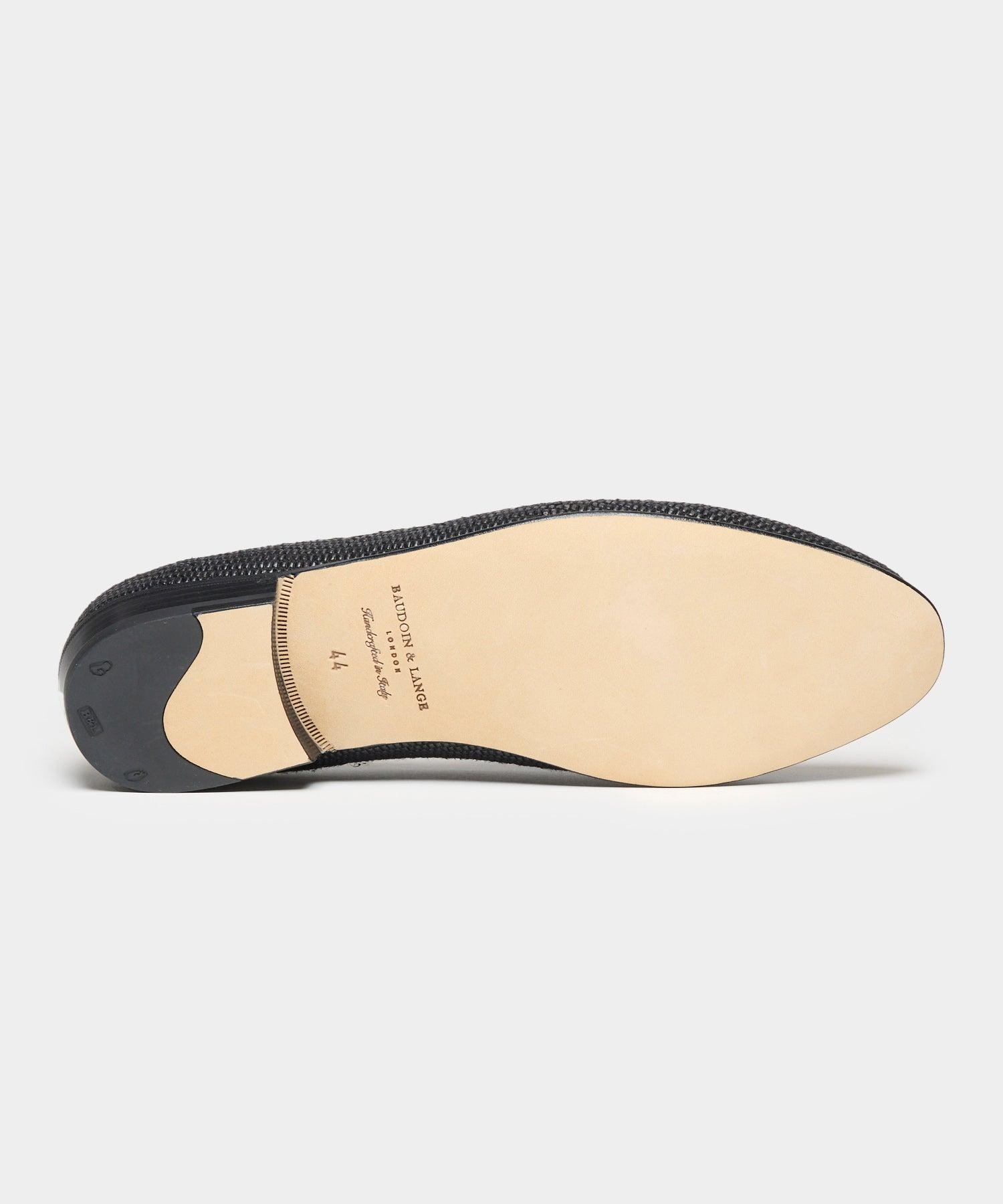 The style that put Baudoin & Lange on the map, the Sagan Loafer is inspired by the classic Belgian loafer. Sophisticated and stylish, beautifully crafted and supremely comfortable, each shoe is handcrafted by a team of artisans, a meticulous process involving hundreds of time-honored steps. This style made in collaboration with Todd Snyder, was inspired by summers on the Upper East Side, and made from black raffia, with an engineered bridge lining to reduce pressure on the sole of your foot, and moisture-wicking cork. The Sagan Loafer is padded for an all-day cushioned walk, and will truly be the most comfortable loafer you'll ever wear. Exclusive to Todd Snyder Not sure what your European shoe size is? Our size chart will help you out Raffia upper Fully unlined, engineered bridge lining, moisture-wicking cork padding, B&L® insole, blake construction Made in Italy Note: If your shoes get wet, insert rolled-up paper to shape. Let shoes dry at room temp, away from direct heat. Wait for any dirt or mud to dry completely before brushing off Style MC6L840100 Founded in 2016 and operating out of London, Baudoin & Lange quickly gained global recognition among fashion designers, celebrities, artists and tastemakers internationally. By working directly with their own artisans and trusted suppliers, they can source the very best leathers and suedes from different parts of Europe.