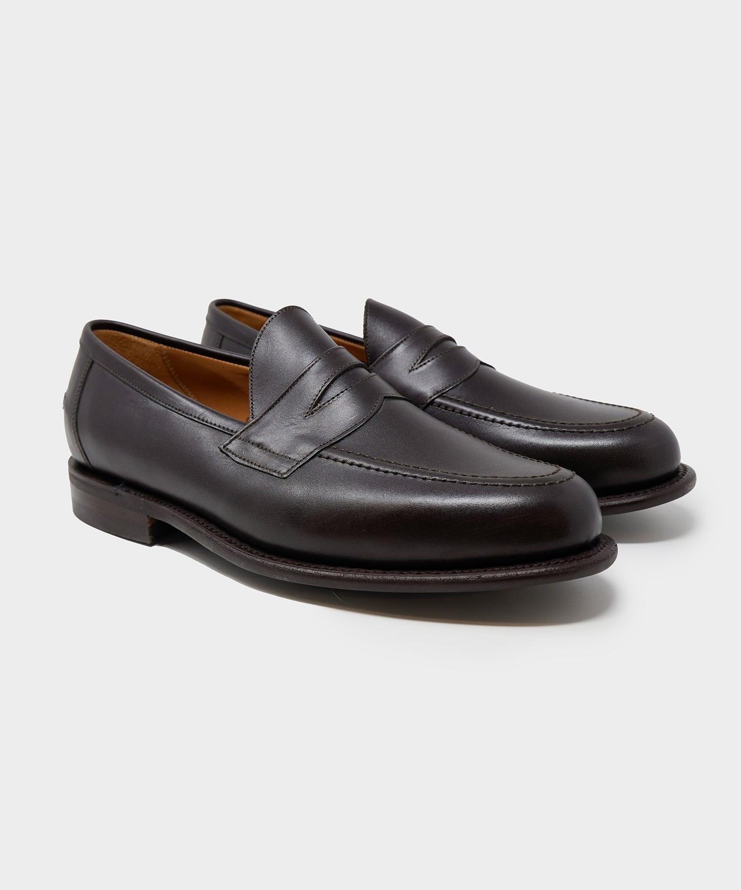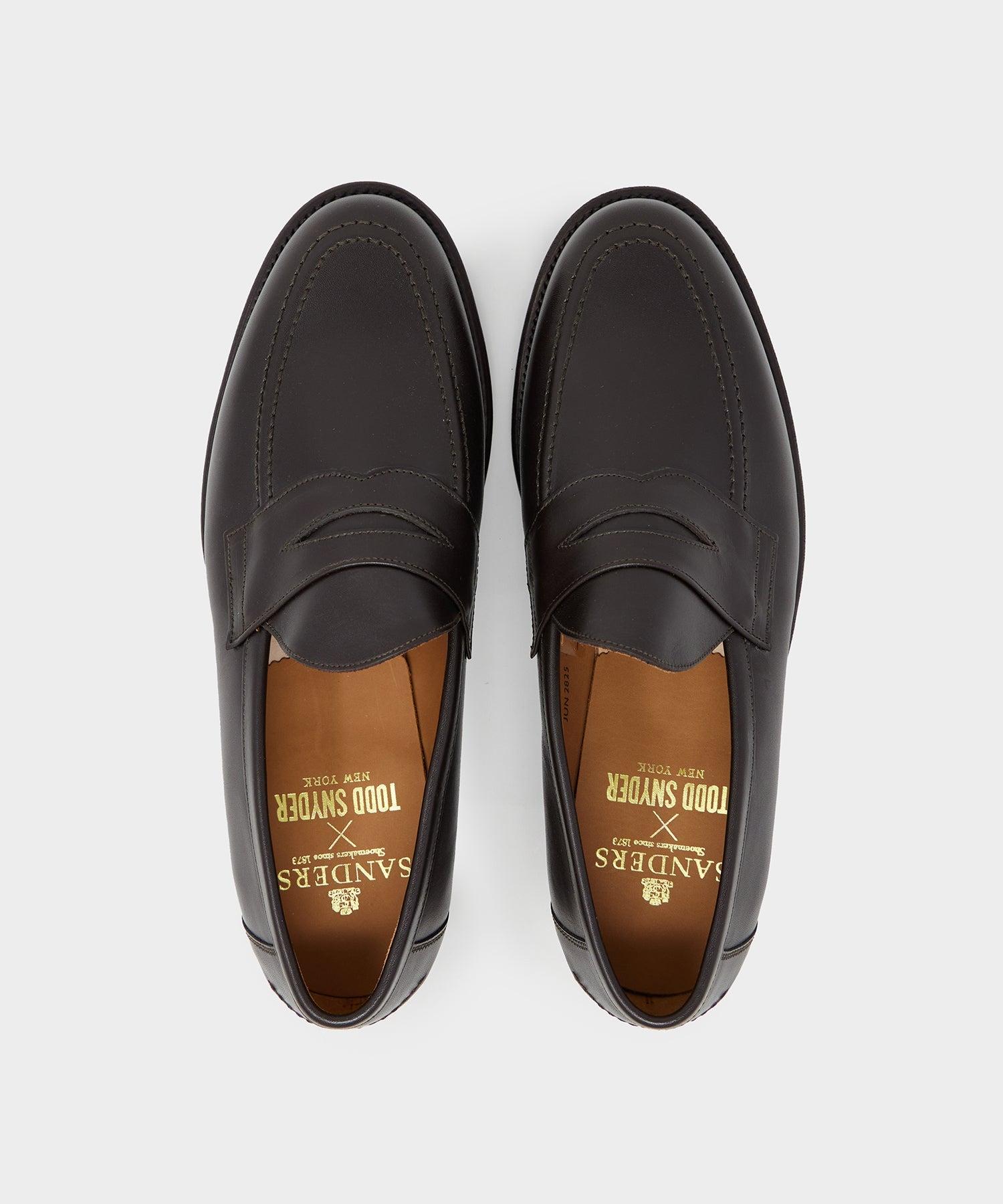 Known throughout the world as the very best in English elegance, Sanders & Sanders shoes are a reflection of over a century of craftsmanship. The Clive Loafer is a classic example of their practical-meets-refined approach. It’s a traditional penny loafer, named because the slot in each strap allowed just enough space to tuck a penny, the cost of a phone call in the 30s. The calf leather uppers sit on top of Sanders’ “city sole,” a non-traditional but highly durable rubber option that’s made for maximum versatility (think rainy weather). Sanders & Sanders was established in 1873 by brothers William and Thomas Sanders of Rushden, Northamptonshire. What began as a five-person workshop grew over the years to become one of England’s most renowned shoe factories. Today, the business is in the hands of the fifth generation of Sanders’, who are still producing their exceptionally high-quality boots out of the same Spencer Road factory they’ve been in since 1924. Penny Loafer Style Calf Leather Upper Full Leather Lining Goodyear Welted Commando Studded Rubber Sole Made in England Style 2627TD UK 7 = US 8 UK 7.5 = US 8.5 UK 8 = US 9 UK 8.5 = US 9.5 UK 9 = US 10 UK 9.5 = US 10.5 UK 10 = US 11 UK 10.5 = US 11.5 UK 11 = US 12 UK 12 = US 13 UK 13 = US 14
