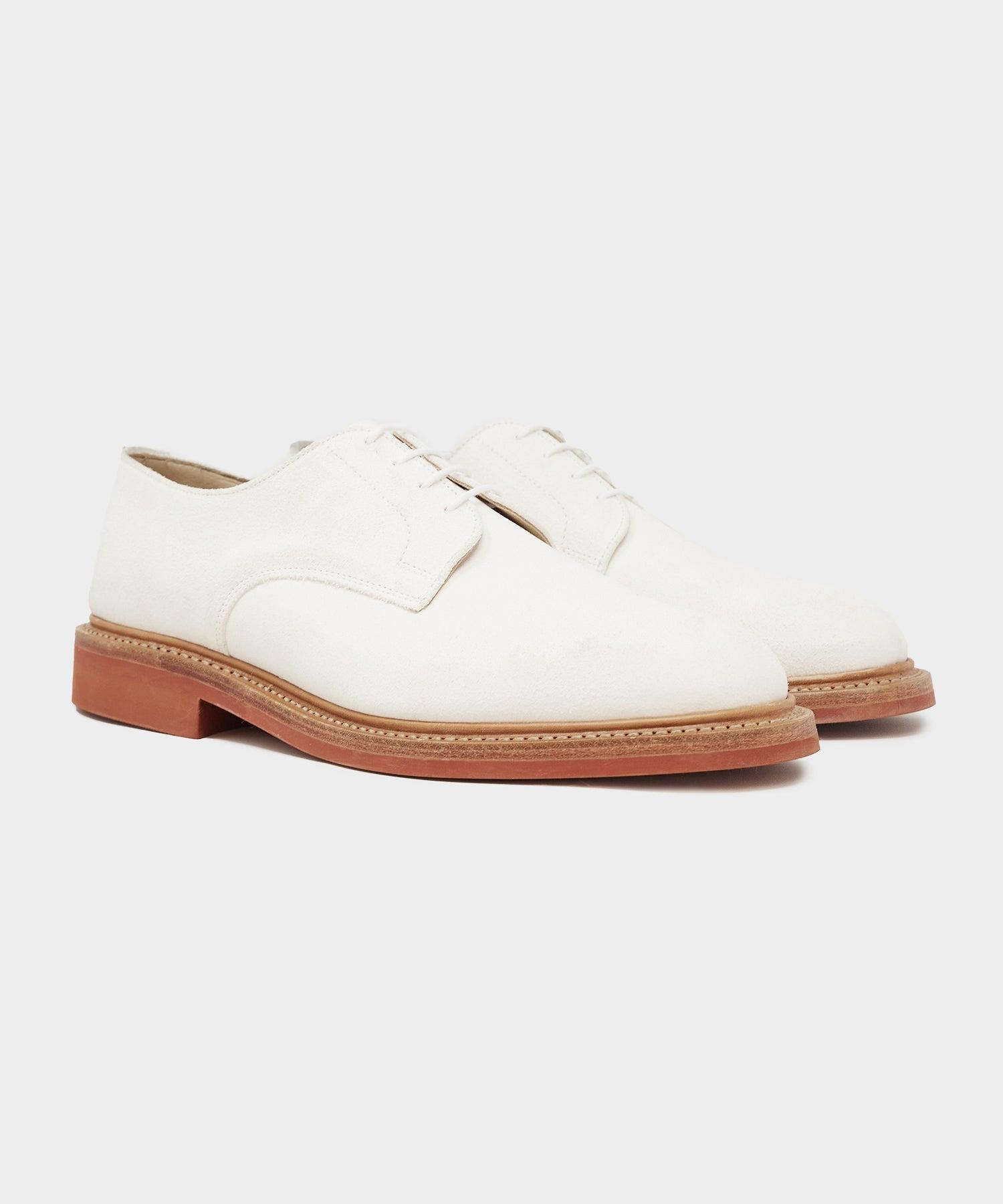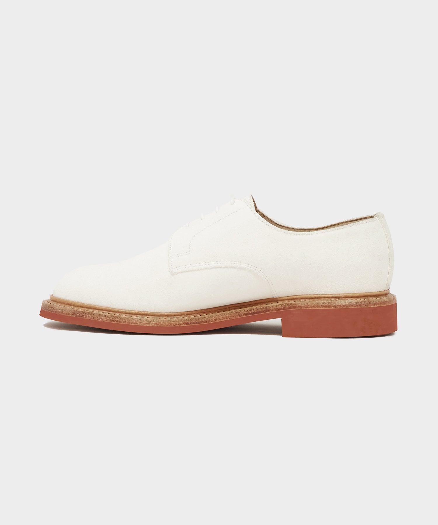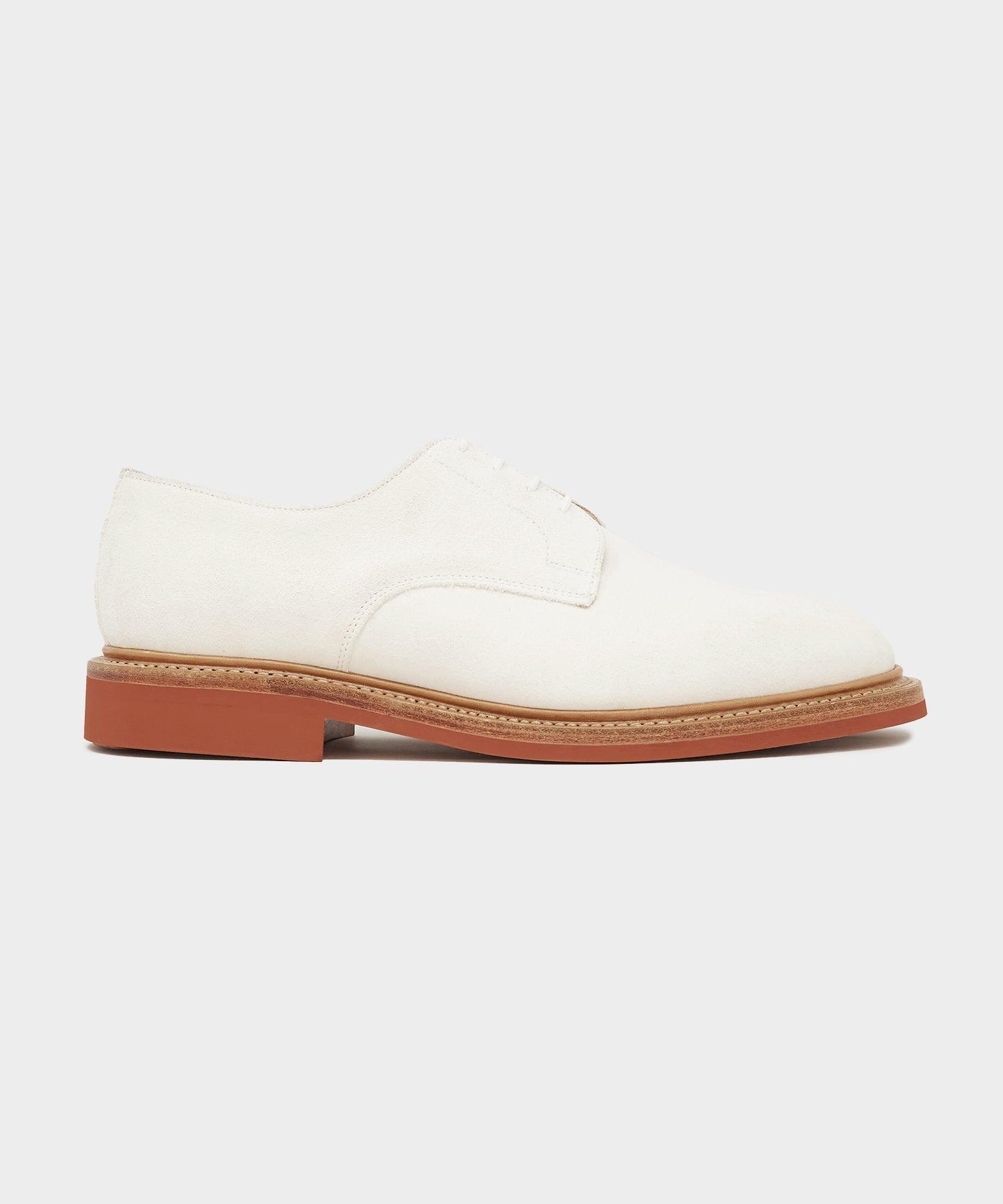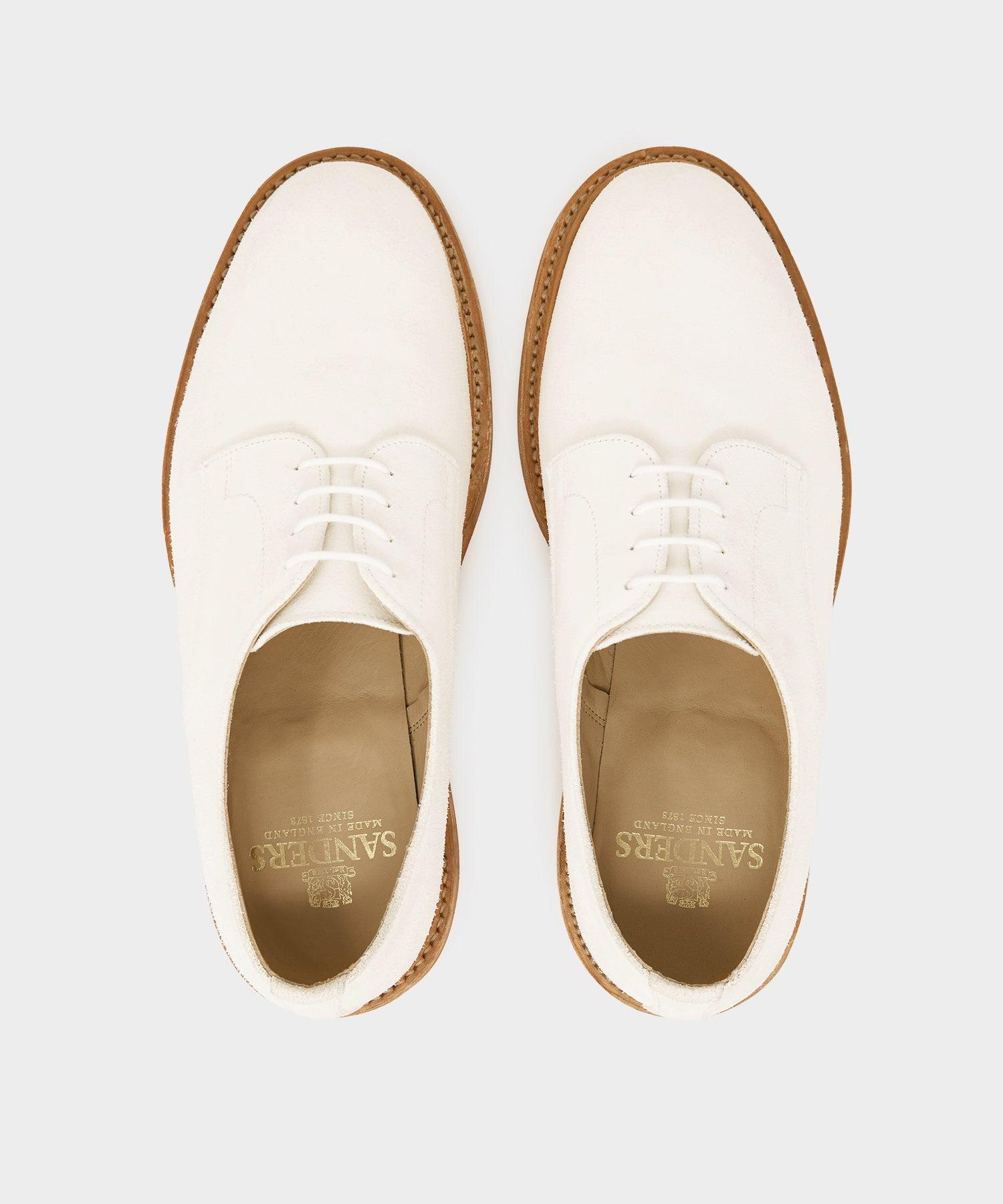 Made in the historic Sanders factory in the UK, these are the best Suede Bucks on the market. Wear them with your favorite summer suit, or scuffed and dirty with broken in jeans. Made in UK Full grain white suede Red brick rubber Dainite sole Leather lining Goodyear welted