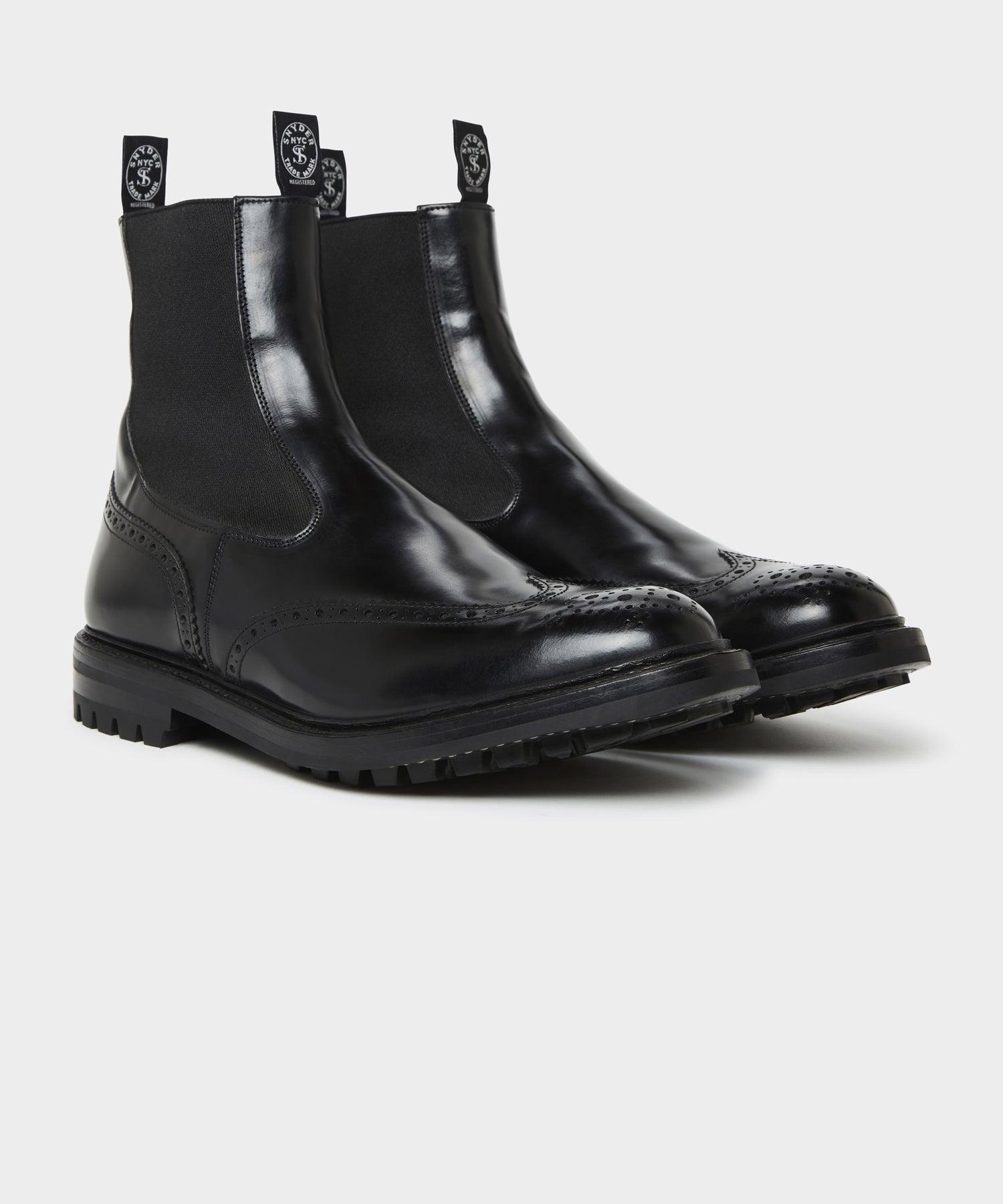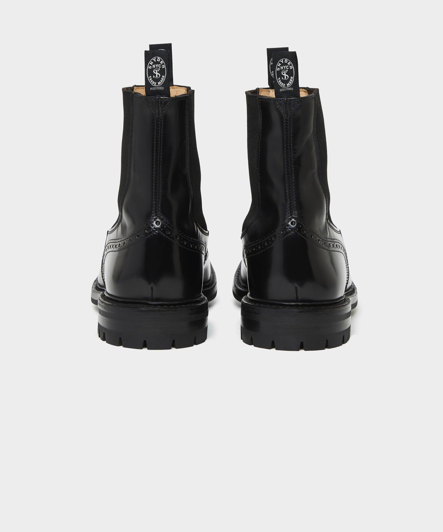 Tricker's classic brogue country boot is perfect for wear whenever you need it. This elastic-sided pull-on Chelsea boot has a storm welt, leather uppers and leather linings for a solid build and excellent comfort, held together with a Commando rubber stitched sole for grip in any terrain. One of this heritage company’s bestselling styles, its simple-yet-sleek design makes it extremely versatile: wear it in the fields, hiking, or out and about town with anything from denim and tees to tailored suits. This particular pair features exclusive Todd Snyder X Tricker’s co-branding at the pull tab, sole, and box. Exclusive to Todd Snyder Not sure what your UK shoe size is? Our size chart will help you out Leather upper Commando rubber outsole Leather stitch detailing TS X Tricker’s label at ankle Made in Northampton, England Style 2754151 Founded in Northampton, England, Tricker’s values have been preserved and developed through five generations and are observed as resolutely today as they were in 1829. When you choose Tricker’s, you never have to choose between practicality, durability and style. Fun fact: since 1989, Tricker's has held a Royal Warrant for shoe manufacturing awarded by His Royal Highness, The Prince of Wales.