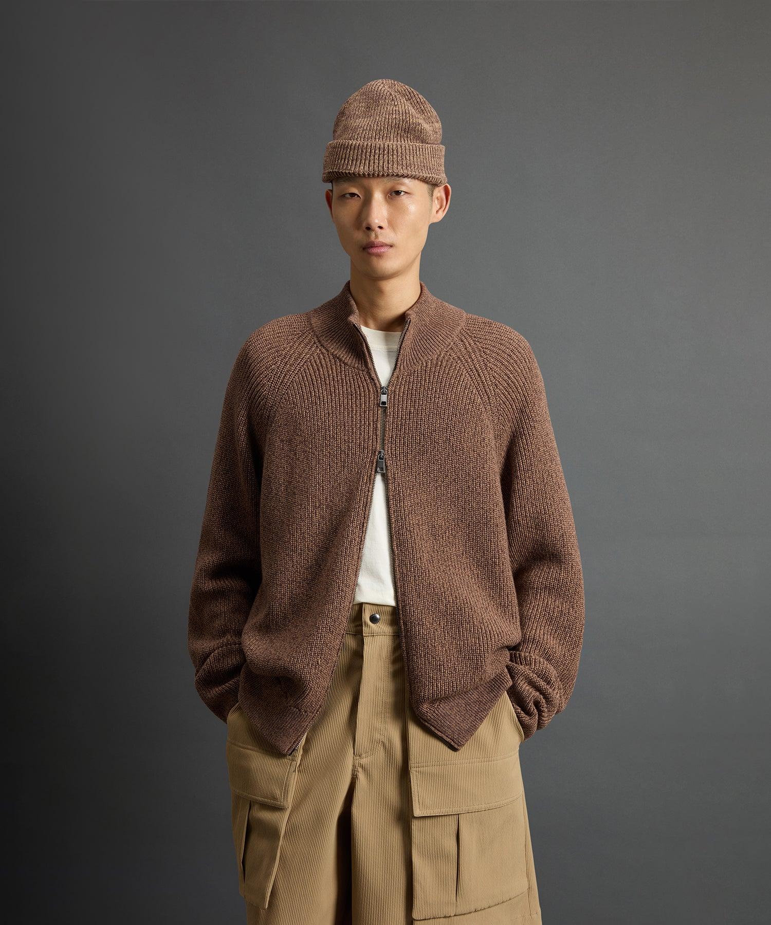 This modern take on the fisherman sweater gets a chic upgrade in Italian cotton. Design details on this sweater-meets-jacket include raglan sleeves, a two-way metal zipper and a ribbed mock neck collar (zip it all the way up for extra warmth). The half-cardigan stitch gives this classic silhouette a subtle texture, and clean, minimal styling keeps the look fresh. A gently oversized fit and its year-round weight make this the perfect transitional piece, easy to layer and versatile enough to wear at work, on weekends or whenever. As Creative Director of Woolrich’s Black Label, Todd has designed a collection of rugged yet luxurious takes on the nearly 200-year-old brand’s iconic styles that marry Woolrich’s innovative technical fabrics with sartorial flourishes. 100% Cotton Relaxed Fit Half-Cardigan Stitch Mock Neck Collar 2-Way Zipper Raglan Sleeve Ribbed Trim Yarn From Italy Garment Made in Romania Dry clean or hand wash cold, separately. Do not bleach. Do not tumble dry. Lay flat to dry and cool iron if needed. Style CFBLKN0365MRUF0787