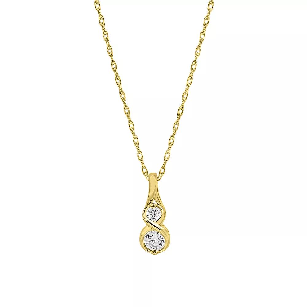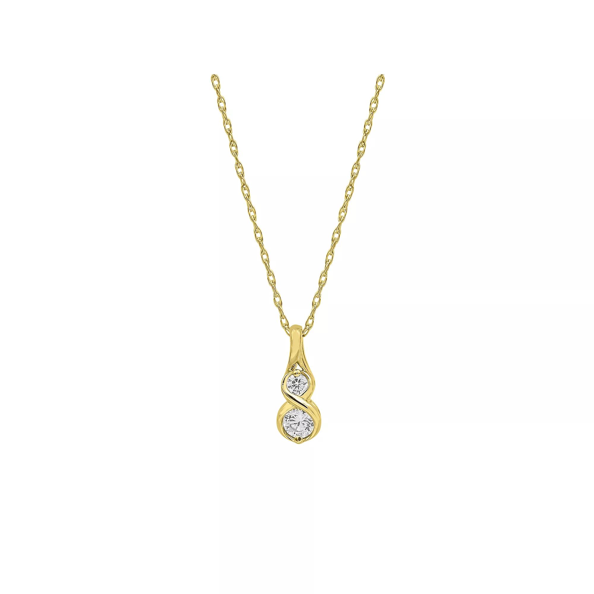 Enjoy elegant style with this Together As One 10k gold 1/4 carat diamond pendant necklace. Enjoy elegant style with this Together As One 10k gold 1/4 carat diamond pendant necklace. DIAMOND DETAILS IGI certified Total weight: 1/4 ct. Color grade: I Clarity: 12 Shape: round Setting: channel Chain length: 18 in. Chain type: rope Clasp: spring-ring Metal: 10k gold Finish: polished Packaging: boxed Size: 18. Color: Yellow. Gender: female. Age Group: adult.