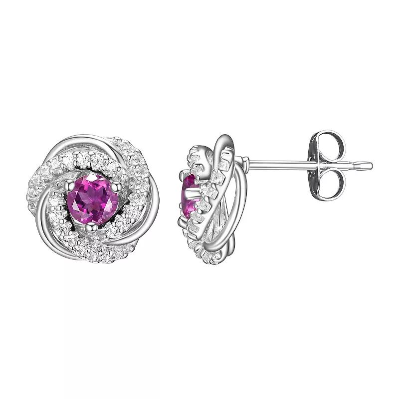 Tokens of Love Sterling Silver Simulated Alexandrite & Lab-Created White Sapphire Love Knot Birthstone Stud Earrings, Women's Product Image
