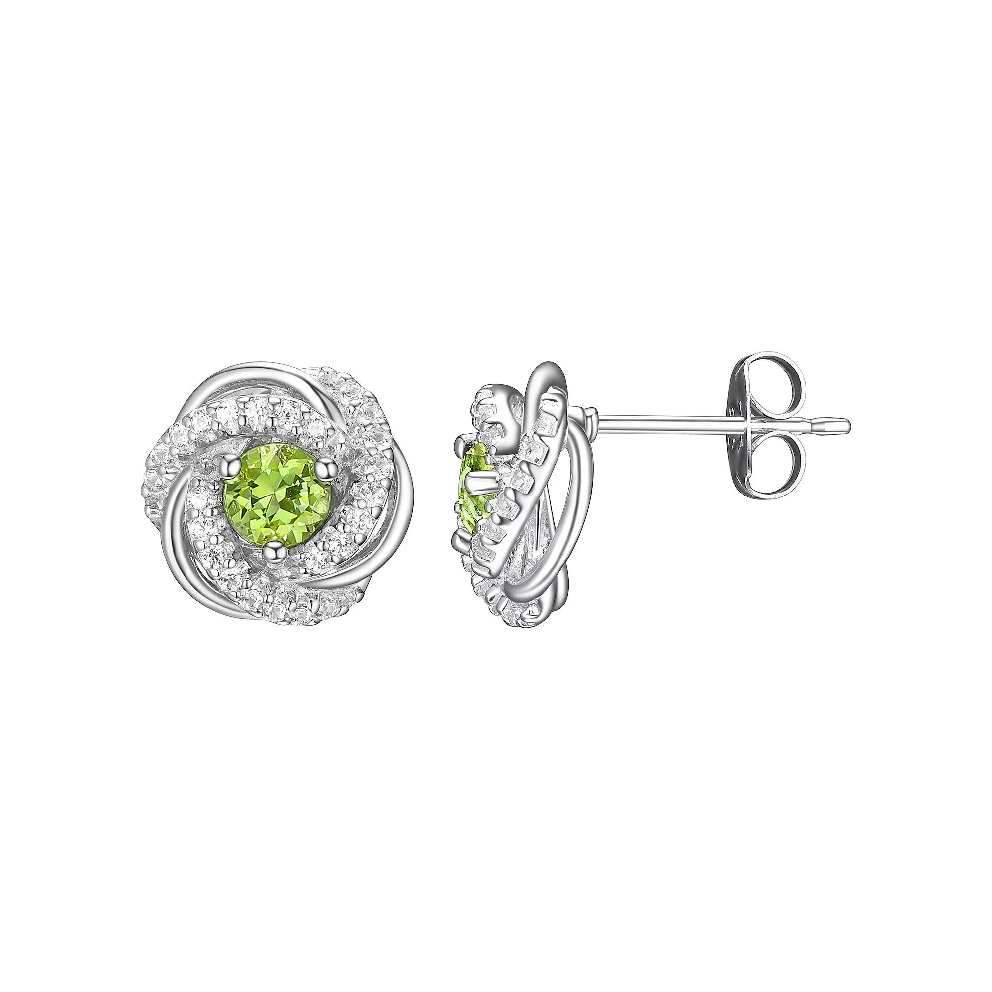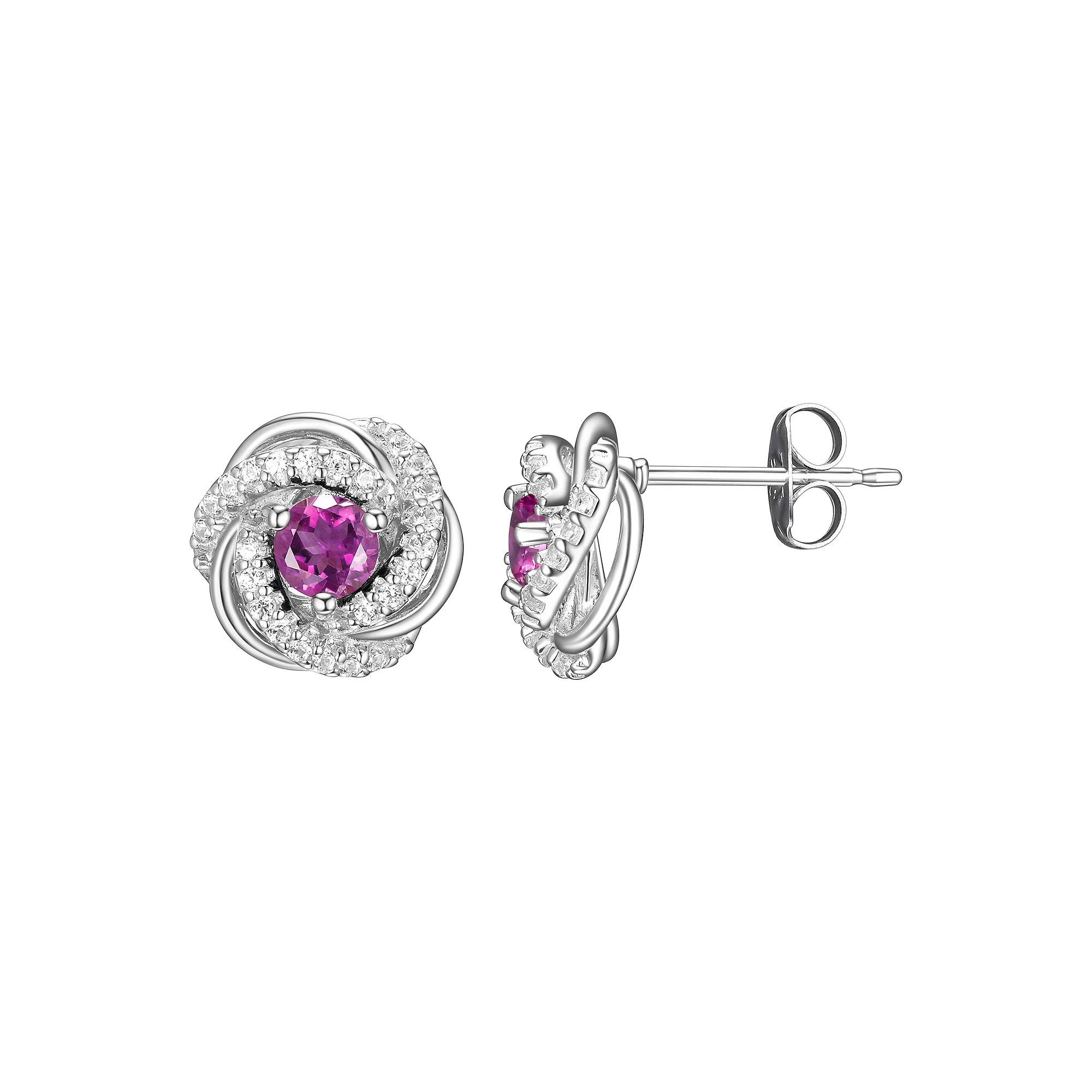 Tokens of Love Sterling Silver Simulated Alexandrite & Lab-Created White Sapphire Love Knot Birthstone Stud Earrings, Women's