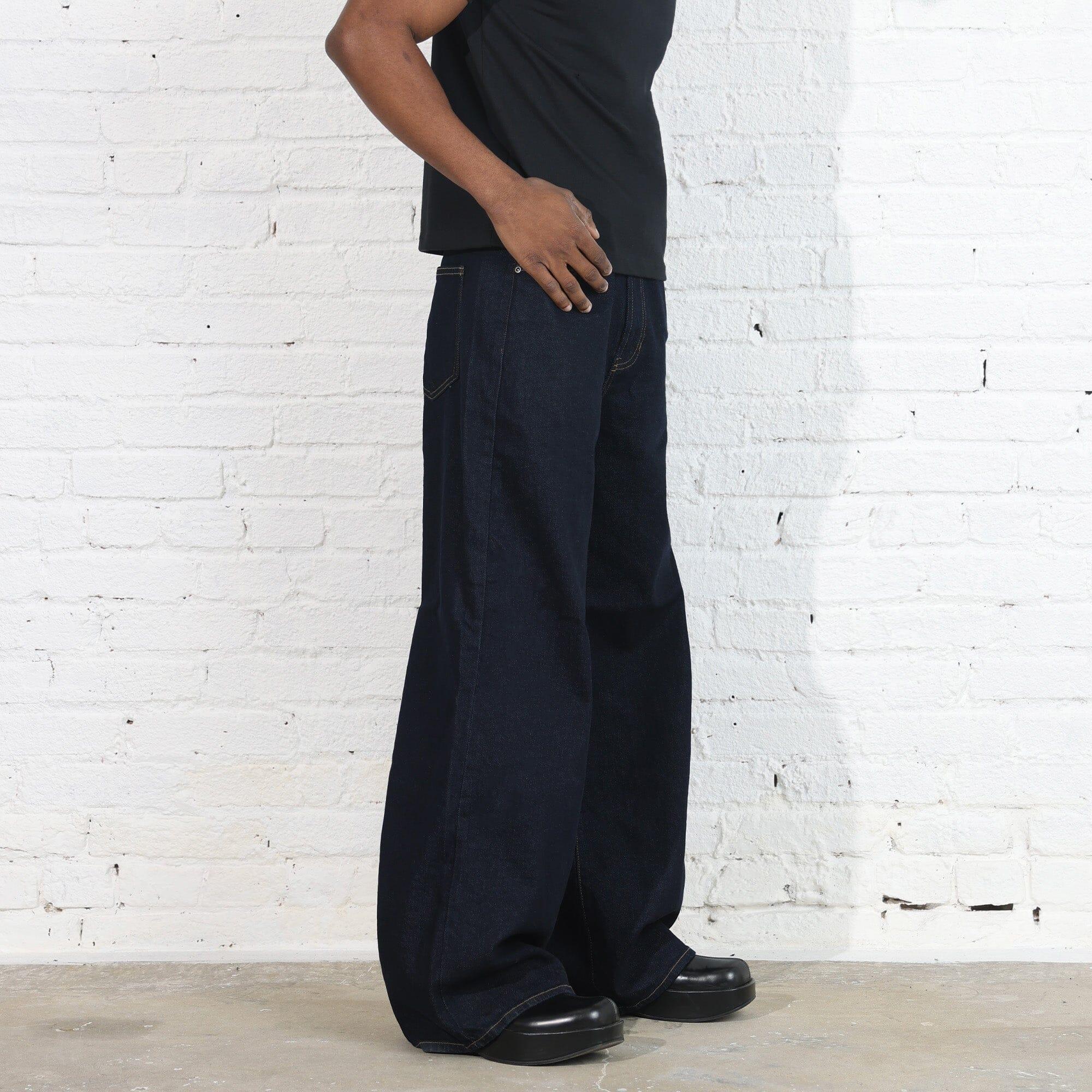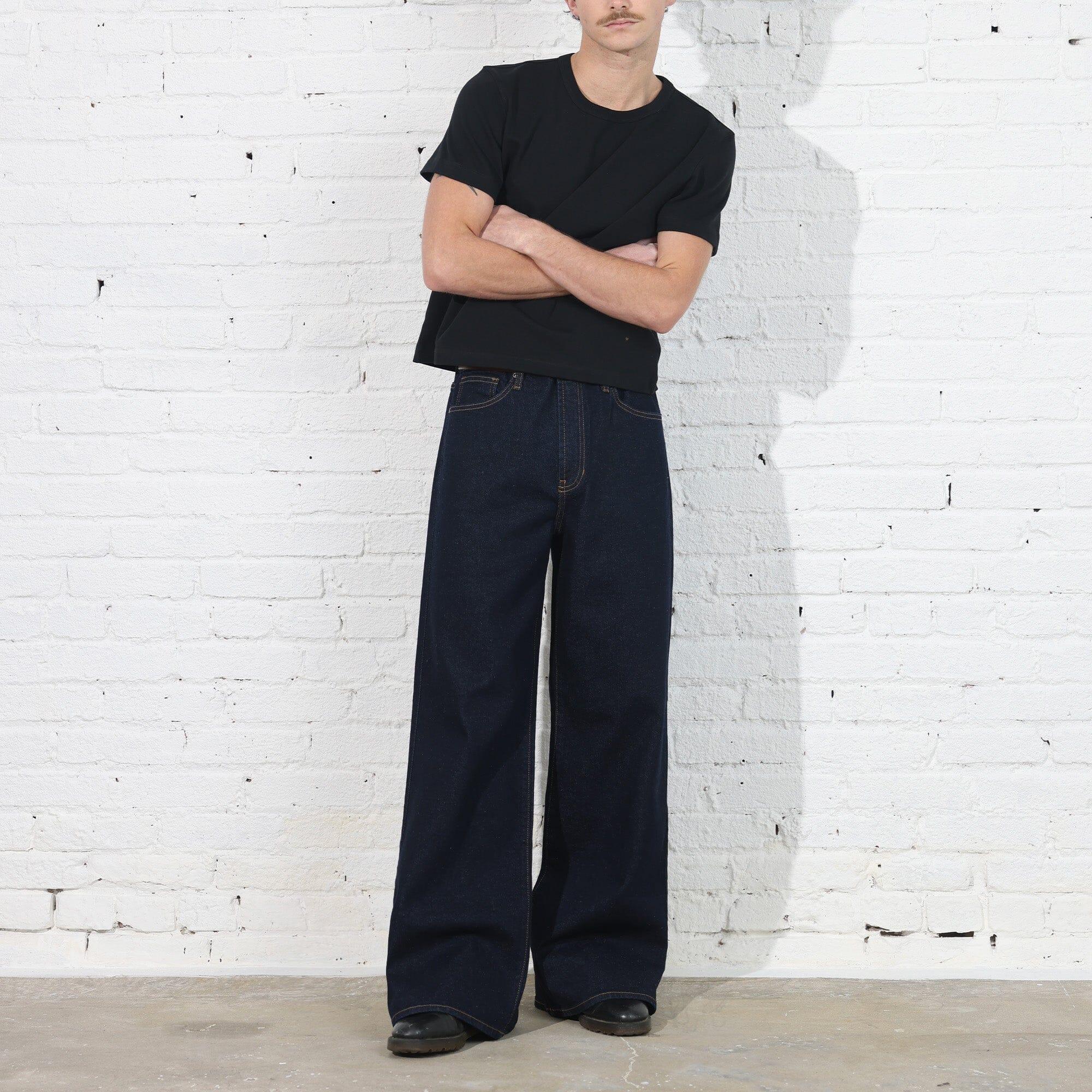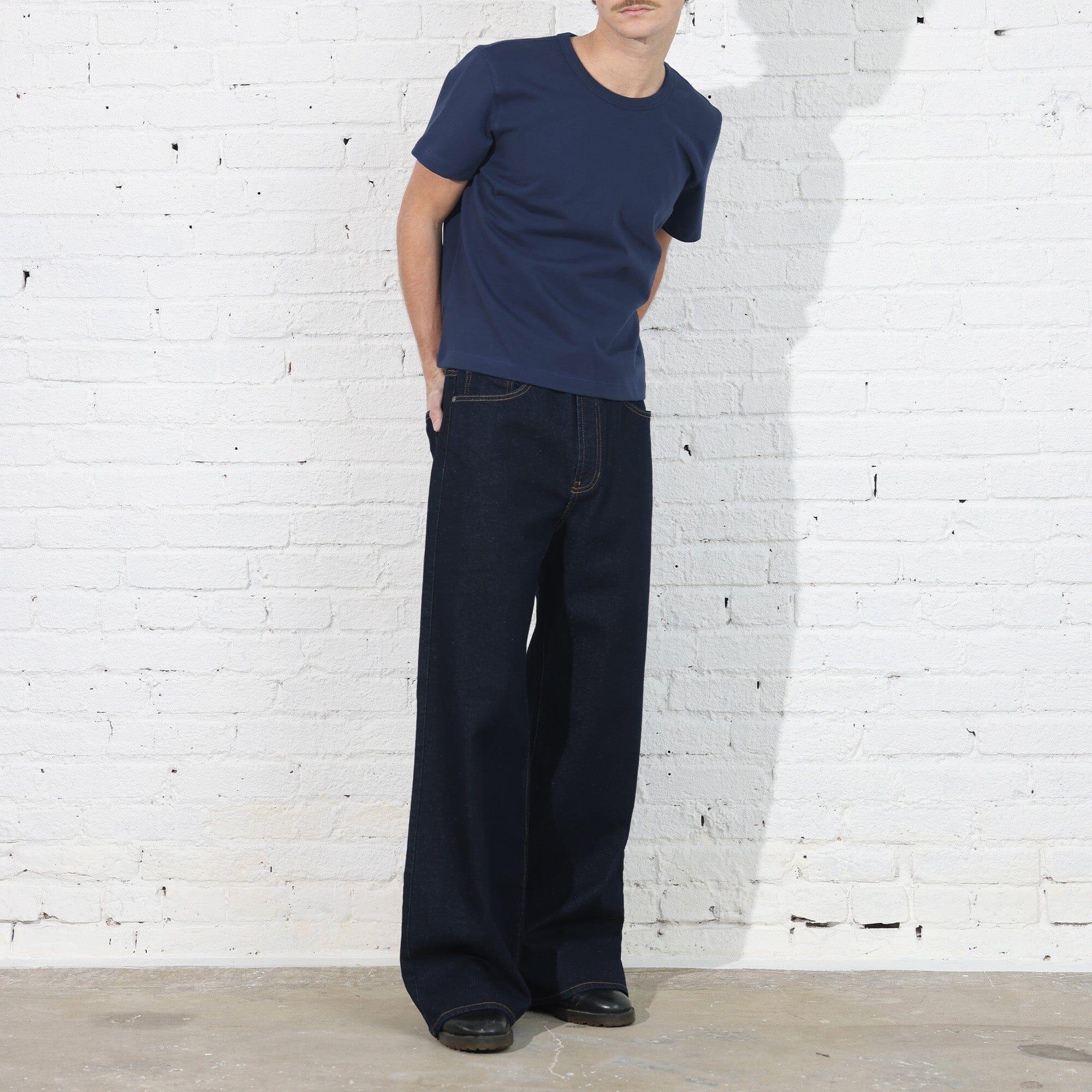 Garment Details: Made in Los Angeles. Pre-Washed and Pre-Shrunk. Raw-Style Indigo Denim (12 oz | 96% Cotton | 4% Elastane). Relaxed Wide-Leg Jean with a Subtle Flare and Slight Stretch. This garment has been lightly washed to remove possible shrinkage while maintaining it's natural raw denim look.
