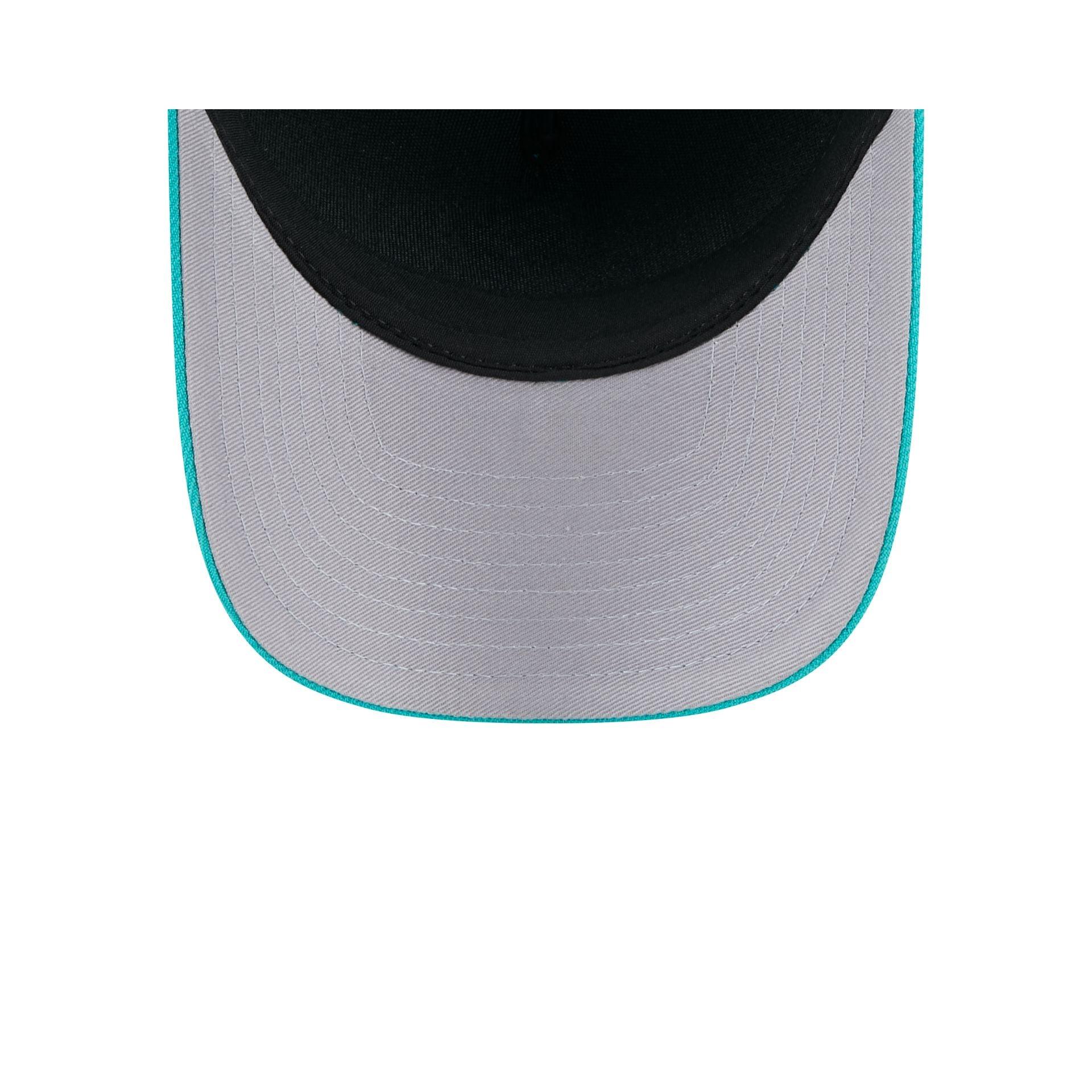 The Tom and Jerry Tom & Jerry 85th Anniversary Teal 9FORTY M-Crown A-Frame Snapback features and embroidered Tom and Jerry graphic at the front panels with a matching tag on a snapback closure at the rear and a gray undervisor.