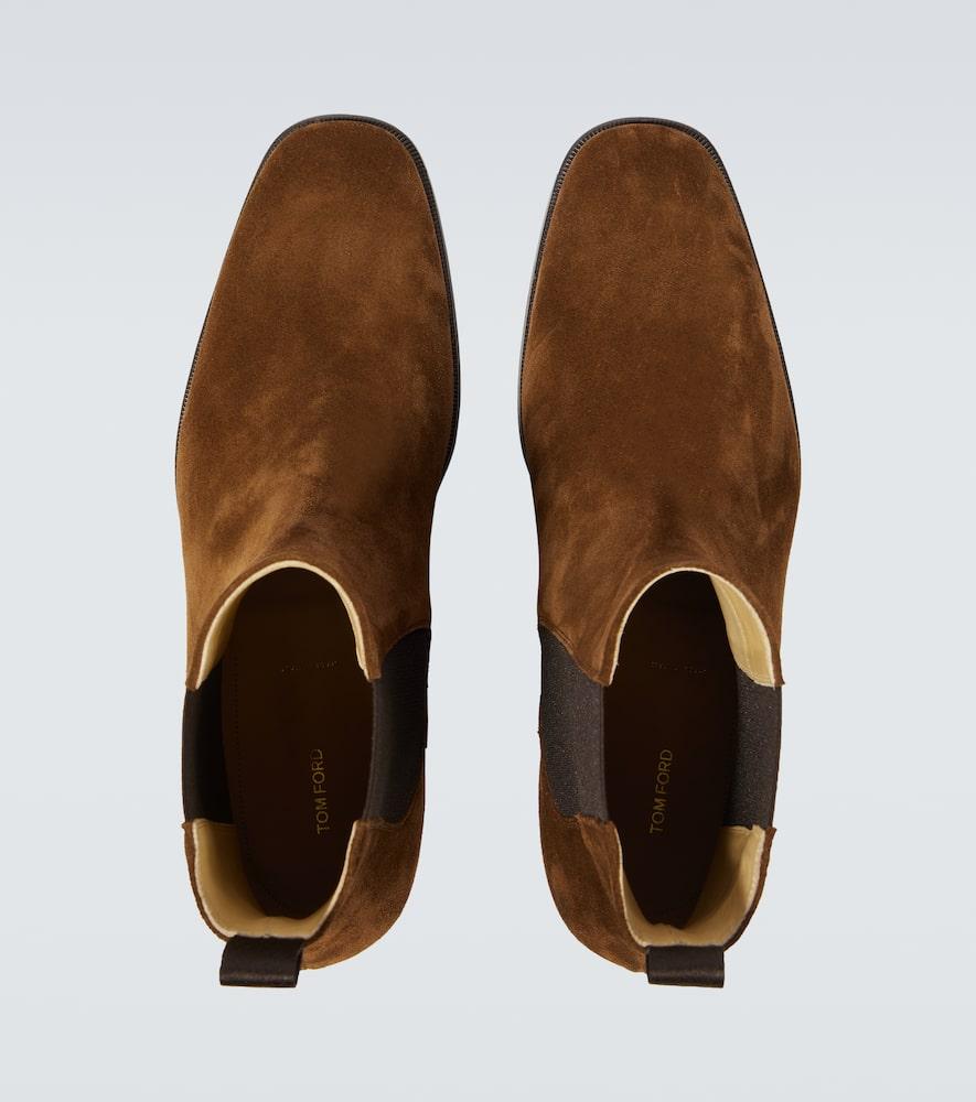 Shop Tom Ford Alec Chelsea Boot In Burnt from 800+ stores, starting at $796. TOM FORD Ankle Boot in Burnt - Brown. Size 9 (also in 10, 11, 7, 8). Suede and textile upper with leather sole. Made in Italy. Pull-on styling with back pull tab. Side elastic inserts. Squared-off toe. Approx 44.45mm/ 1.75 inch heel Approx 165mm/ 6.5 inch shaft Shaft measures approx 6.28 in circumference. TFOF-MZ35. J1387-LCL046N. About the designer: Tom Ford lends a contemporary elegance to all things sartorial. Raised in Santa Fe, Ford made a name for himself as creative director at Gucci, where he transformed the house of fashion into a thriving 21st century brand before going on to launch his own wildly successful label in 2005. Today, Tom Ford is coveted for everything from its statement sunglasses and fine leather accessories to its glamorous dresses and impeccably tailored suits. A Tom Ford design is an exquisite balance of timelessness and modernity.