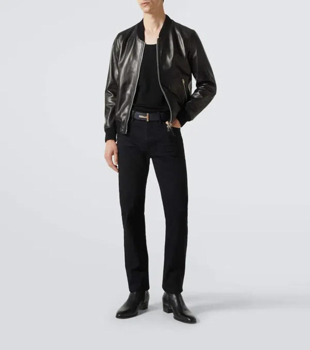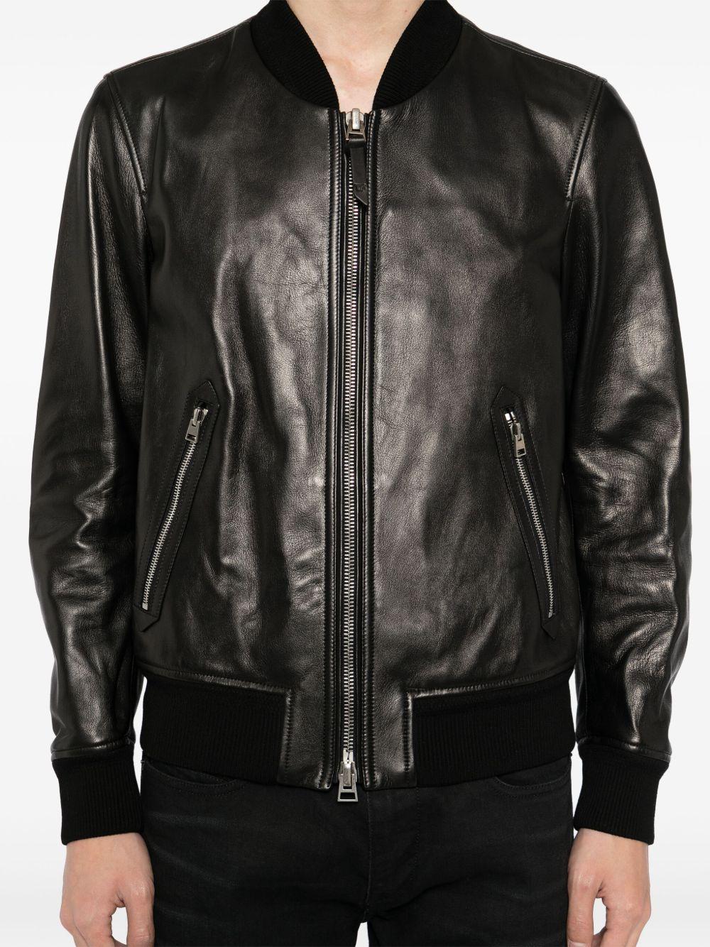 Shop Tom Ford Black Shiny Nappa Plonge Leather Jacket In Multi from 800+ stores, starting at $5222. For his first runway show as Creative Director of TOM FORD, Haider Ackermann began with a run of black-on-black outfits, inspired by the style of its namesake founder. Part of the inaugural AW25 collection, this bomber jacket has been made in Italy from super-soft plonge leather and cut in a slouchy shape, with ribbed trims to temper the fit.