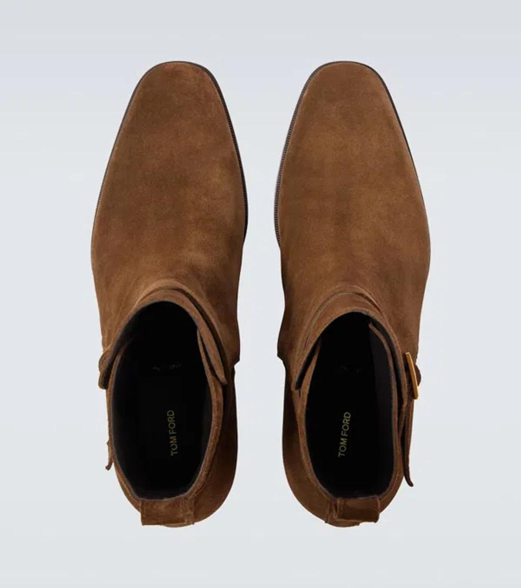 Shop Tom Ford Hainaut Suede Chelsea Boots In Burgundy from 800+ stores, starting at $1230. TOM FORD ankle boots in supple suede accented with a wraparound ankle strap Stacked heel Round toe Goldtone logoengraved buckle Cotton lining Backstay pull tab Leather outsole Spot clean Made in Italy