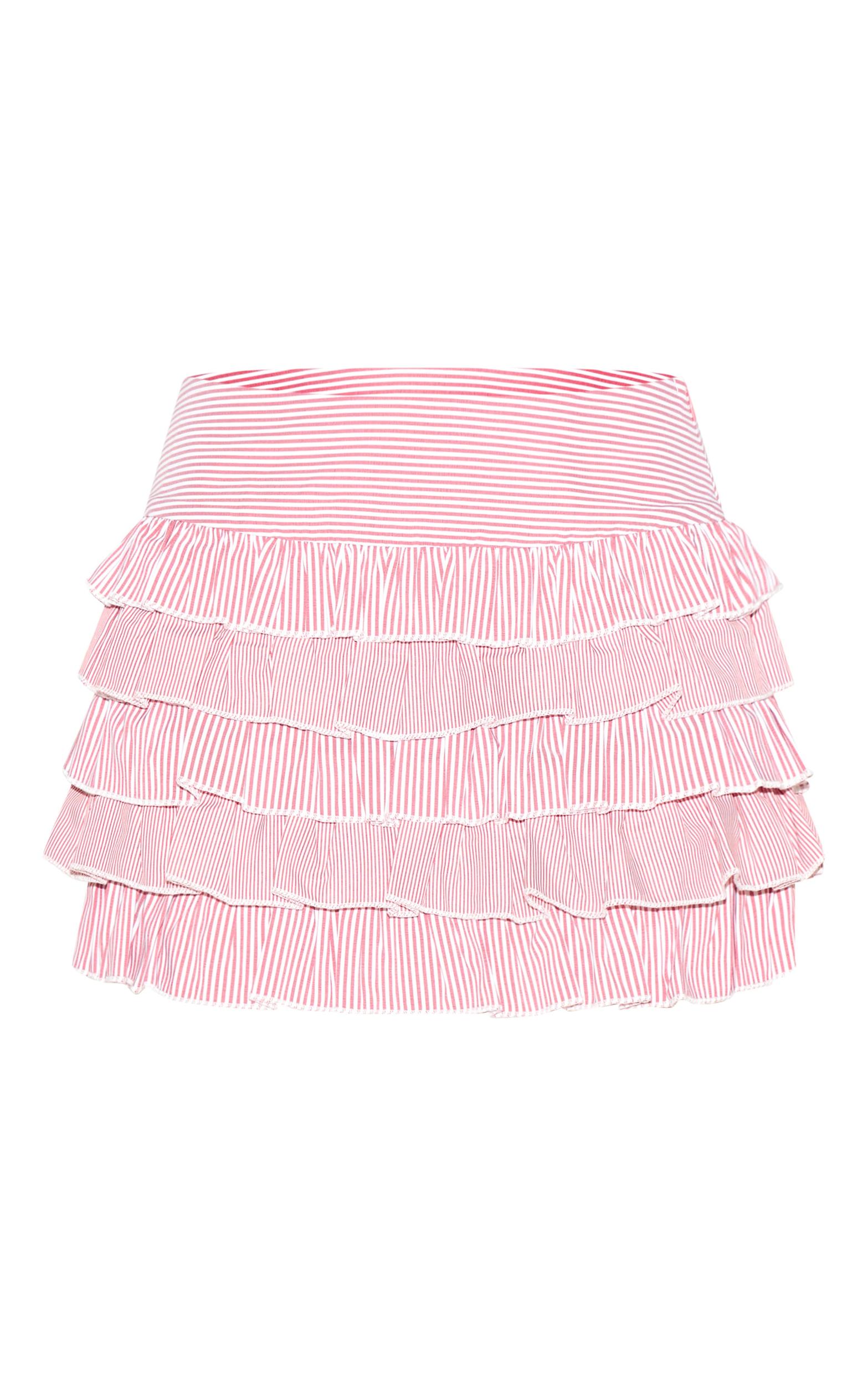 Make a statement with the tomato red contrast pinstripe cotton poplin rara mini skirt. Made from a tomato red contrast pinstripe cotton poplin material with a tiered ruffle design and a mini length. Style with a long sleeve top and a pair of sandals for a playful finish.Length approx 33cm/13inch (Based on sample size US 4)Model wears size UK 8/ EU 36/ AUS 8/ US 4Model Height - 5ft 9inchp]:!mb-4inch>Brand: PrettyLittleThingCategory: BottomsProduct type: Mini SkirtColor: Tomato RedMaterial: Cotton PoplinDesign: PrintOccasion: Day