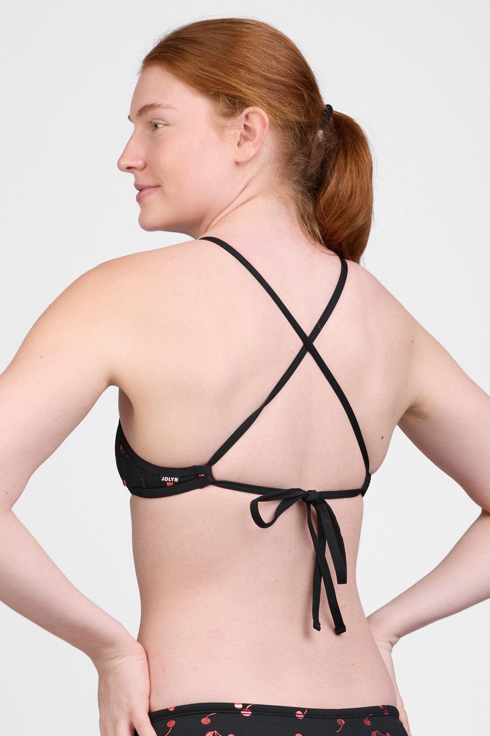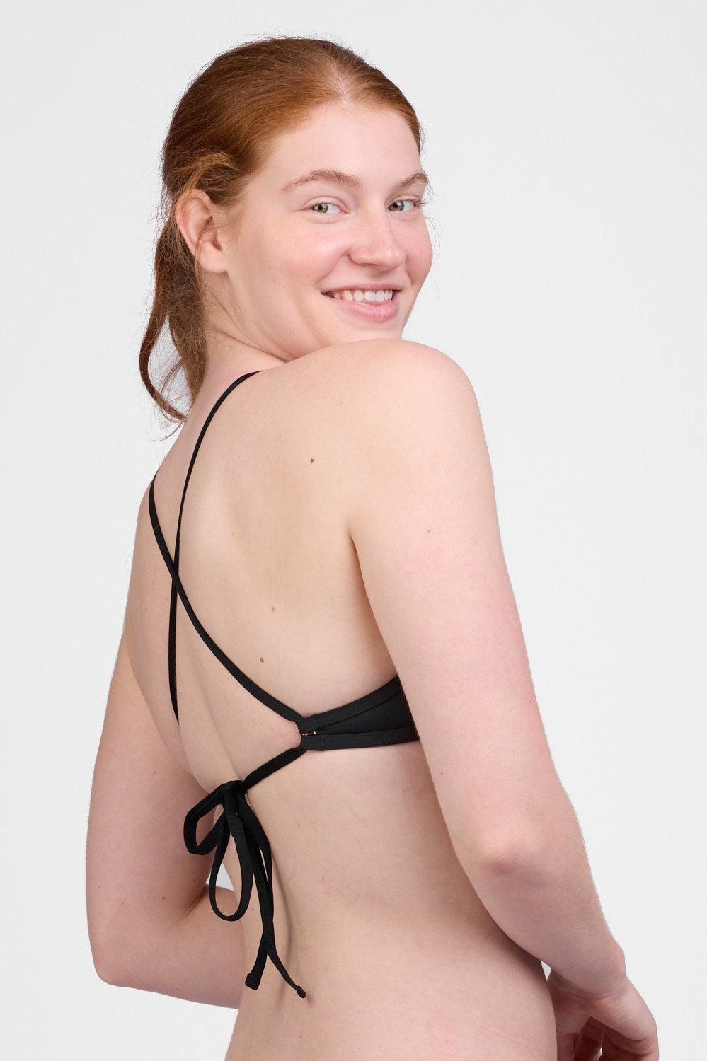 The Tomcat is a supportive bikini top made to train with fabric that holds up even after hours in chlorine. The scooped neckline provides comfort, while the cross-back tie straps allow for adjustability in order to find the perfect fit. The three vents in the front let water pass through during your workout to reduce drag, improve hydrodynamics, and ensure the top stays put even during your toughest training session. Sizes XS - XL feature a 3/4" center front gap, while the D & DD sizes have added depth in the cup and a center front gap that is only 1/2" wide for added coverage. Features: Good for: Swim, Surfing, Water Polo, Surfing, paddling, lifeguarding, ocean activities, pool activities, lifestyle Tie-back straps Lined for maximum privacy Medium-full coverage Coverage 4 Unpadded Medium-high impact Tagless for maximum comfort Chlorine proof Pill-resistant 2-way stretch Reinforced stitching Fabric Composition: Foreverever Fabric® 100% Polyester Elastic contains trace amounts of Latex Care Instructions: Hand wash cold Hang dry Do not iron, dry clean or bleach
