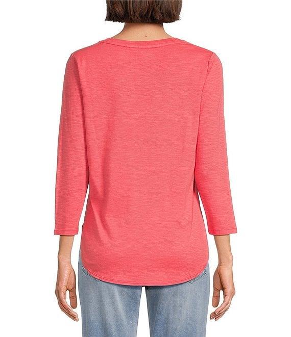 From Tommy Bahama, this tee features: Slub rib fabrication V-neckline 3/4 sleeves Slight hi-low hemline Pullover construction Approx. 24.5" in length Cotton Machine wash cold with like colors on gentle; tumble dry low; cool iron Do not dry clean Imported.