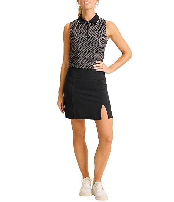 From Tommy Bahama, this skort features: IslandZone® fabrication A-line silhouette Built-in shorts Front slit detailing Side zippered pockets Moisture-wicking capability UPF 30 UV protection Pull-on construction Approx. 16" front length; 16.5" back length; 4" inseam Nylon/spandex Zip garment before cleaning Machine wash cold with like colors inside out on gentle; tumble dry low; cool iron if needed; dry clean if necessary Do not use fabric softener Imported.
