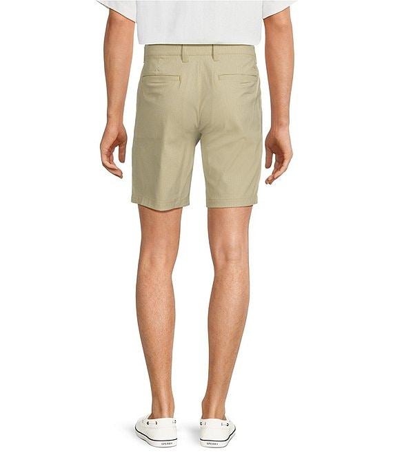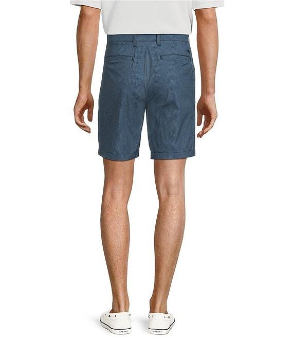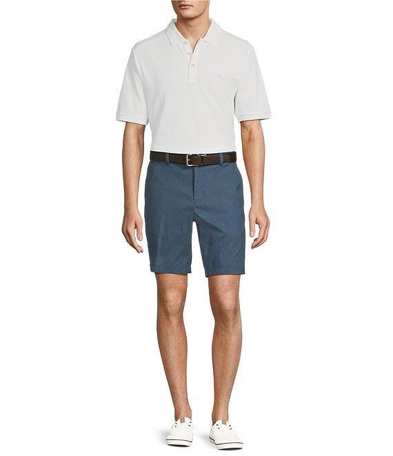 From Tommy Bahama, these short features: Check print Flat front Belt loops Zip fly with button closure Quarter-top front pockets Double layer welt back pockets 9" inseam Yarn-dye recycled nylon/recycled polyester/spandex Machine wash/tumble dry Imported.