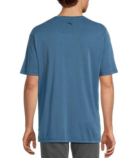 From Tommy Bahama, this t-shirt features: Stripe pattern V-neck Short sleeves Flat knit rib neckband Tonal piping Topstitching Marlin embroidery Yarn dyed Tencel™ modal/Coolmax® EcoMade polyester Machine wash/tumble dry Imported.