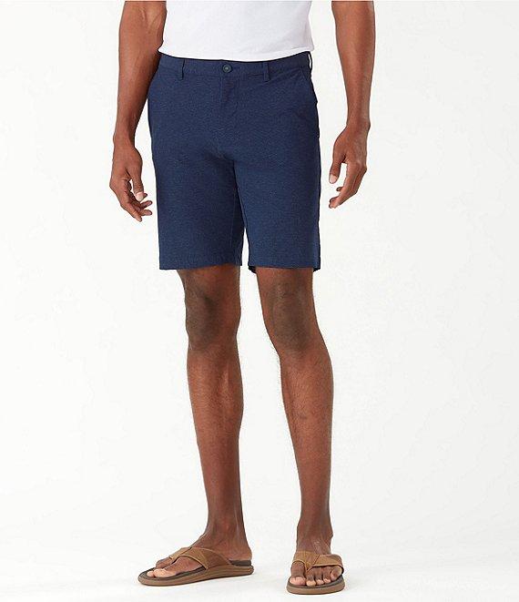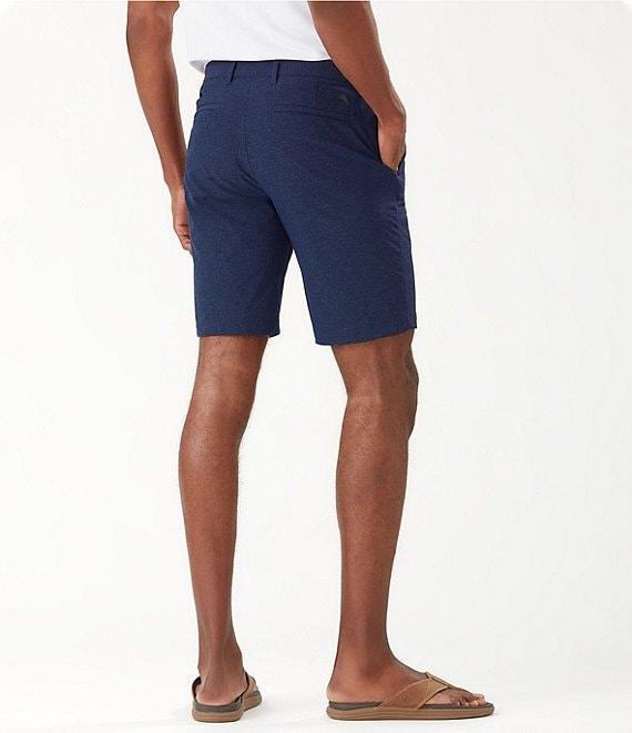 From Tommy Bahama Big & Tall, these shorts feature: Belt loops Front button/zip closure Stretch ripstop Quarter-top front Double welt back pocket Big inseam: approx. 10" Tall inseam: approx. 11" Flat front silhouette Polyester/nylon Machine wash/tumble dry Imported.