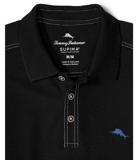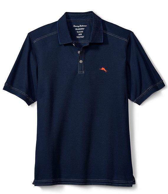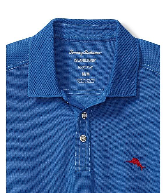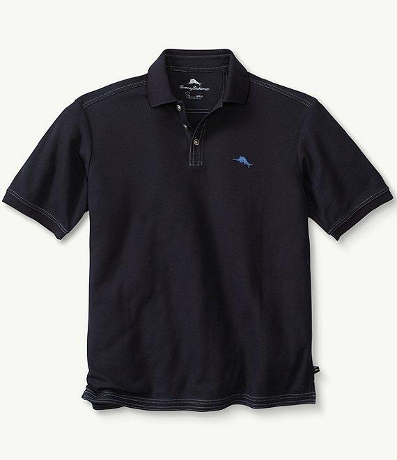 From Tommy Bahama Big & Tall, this polo shirt features: Flat knit polo collar Short sleeves with ribbed cuffs 3-button placket Embroidered "marlin" logo on the left side of the chest Straight hem with side vents Pullover construction UPF 30 IslandZone pique fabric Supima cotton/polyester Machine wash/tumble dry Imported.