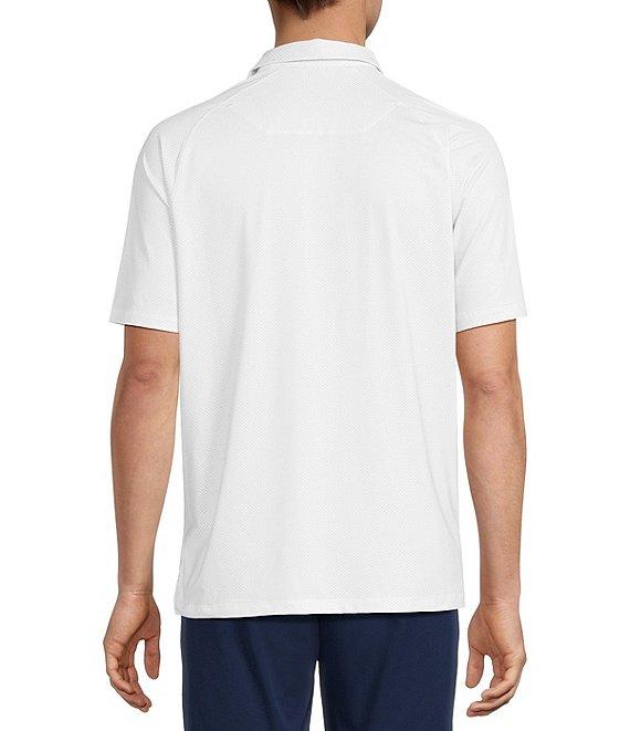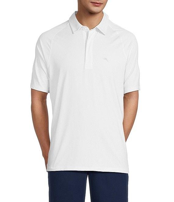 From Tommy Bahama, this shirt features: All-over print Silicone branding on the left chest Covered zip placket Short, raglan sleeves Side seam ventson Quick dry Cooling properties UPF 30 Moisture wicking Stretch fabric Nylon/polyester/spandex Machine wash Imported.