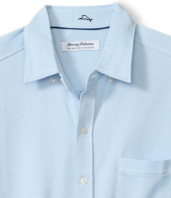 From Tommy Bahama Big & Tall, this shirt features: Vertical striped pattern Spread collar Long sleeves Button-front full closure Patch pocket on left side of chest Moisture wicking Quick dry Embroidered marlin Supima cotton/recycled polyester Machine wash/tumble dry Imported.