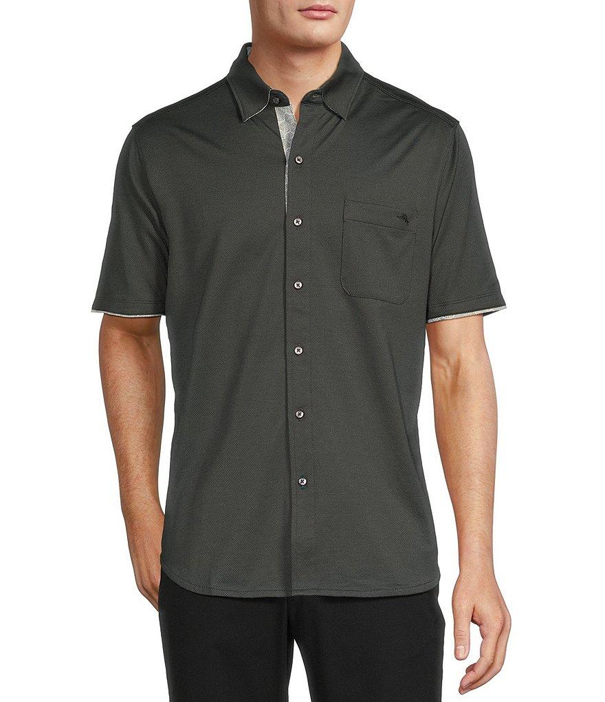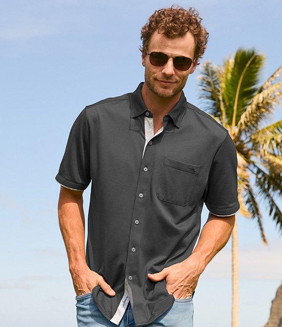 From Tommy Bahama, this shirt features: Printed trim Spread collar Short sleeves Left chest pocket Button-front closure Piping details Moisture wicking Quick dry UPF 30 Stretch fabric Supima® cotton/recycled polyester Machine wash Imported.